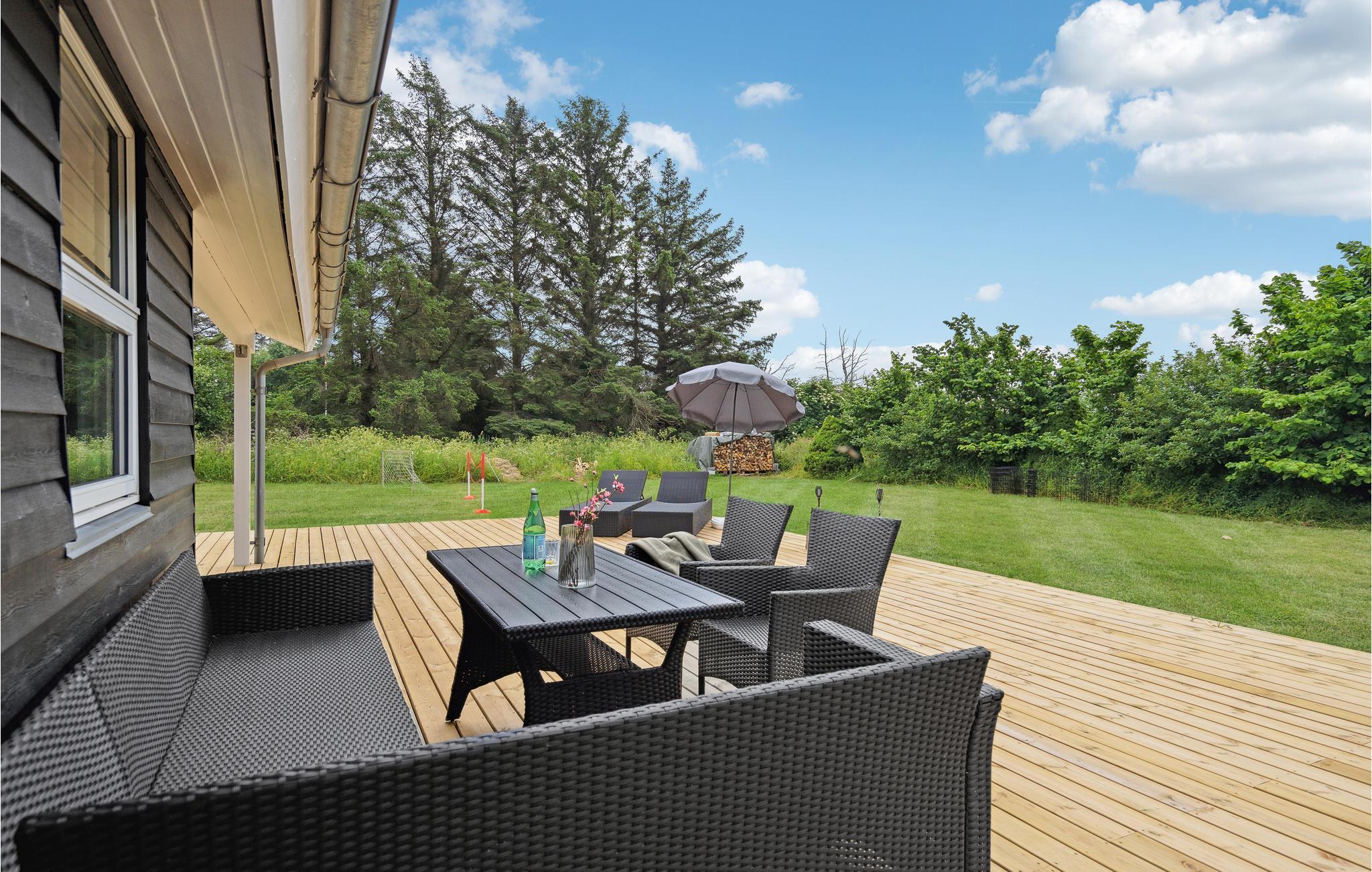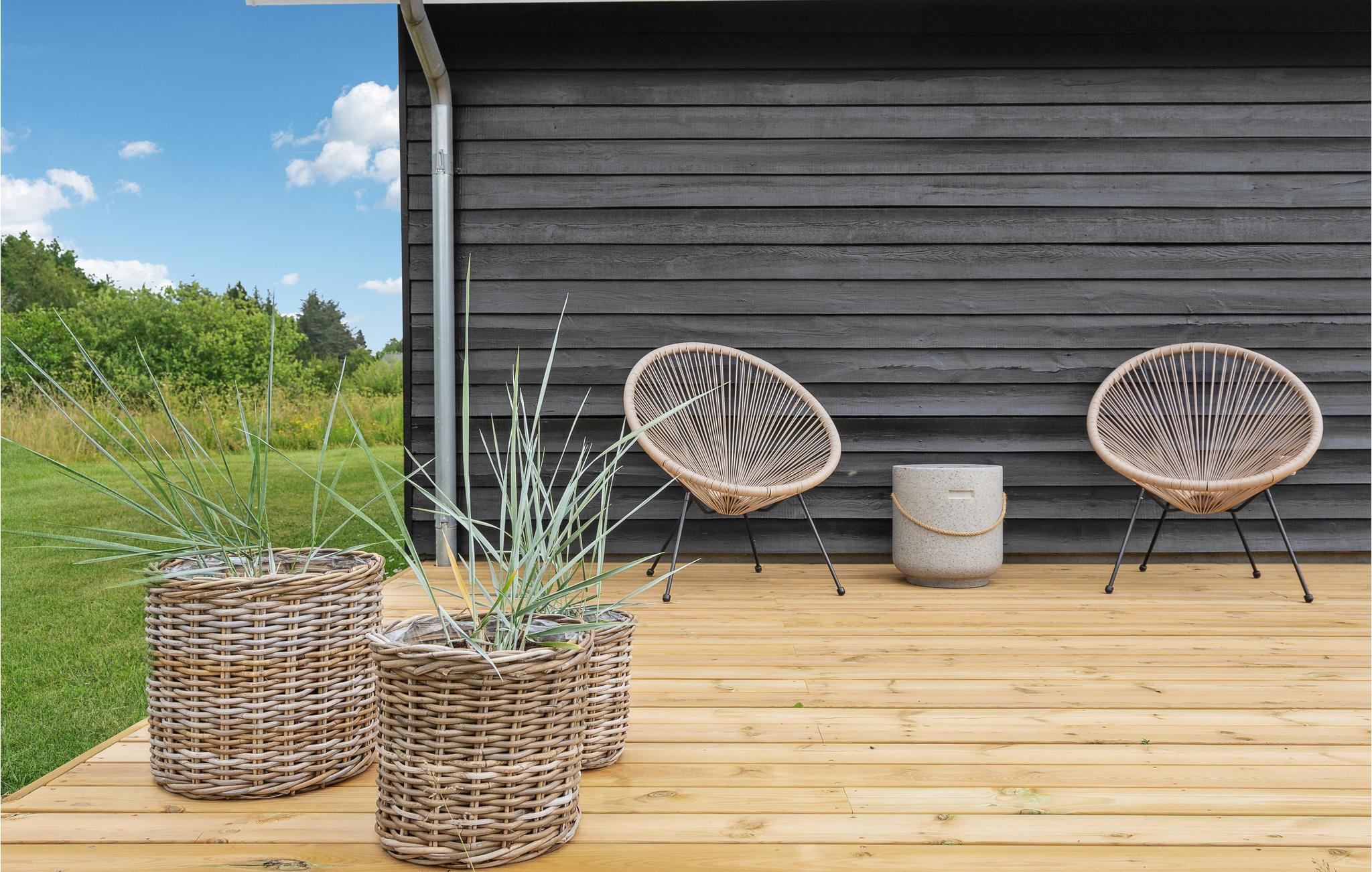 Glæd jer til en familieferie i dette skønne hus, som lægger op til en uforglemmelig ferie. Træd ind i huset og føl jer straks hjemme. Vinduerne går fra gulv til loft og sørger et naturligt lys, som skaber en skøn følelse af ro. Om aftenen kan I hygge jer med madlavning, brætspil eller en god film, mens ilden knitrer i brændeovnen. Glæd jer også til en lille wellness-stund i badeværelset, hvor der både er boblebad og sauna. Hele familien kan se frem til gode timer i det fri, for udendørs venter der er en dejlig have. Den store terrasse bliver jeres faste opholdssted på solskinsdagene. Dæk op til dagens måltider, mens børnene har det sjovt med at løbe og lege på grunden.