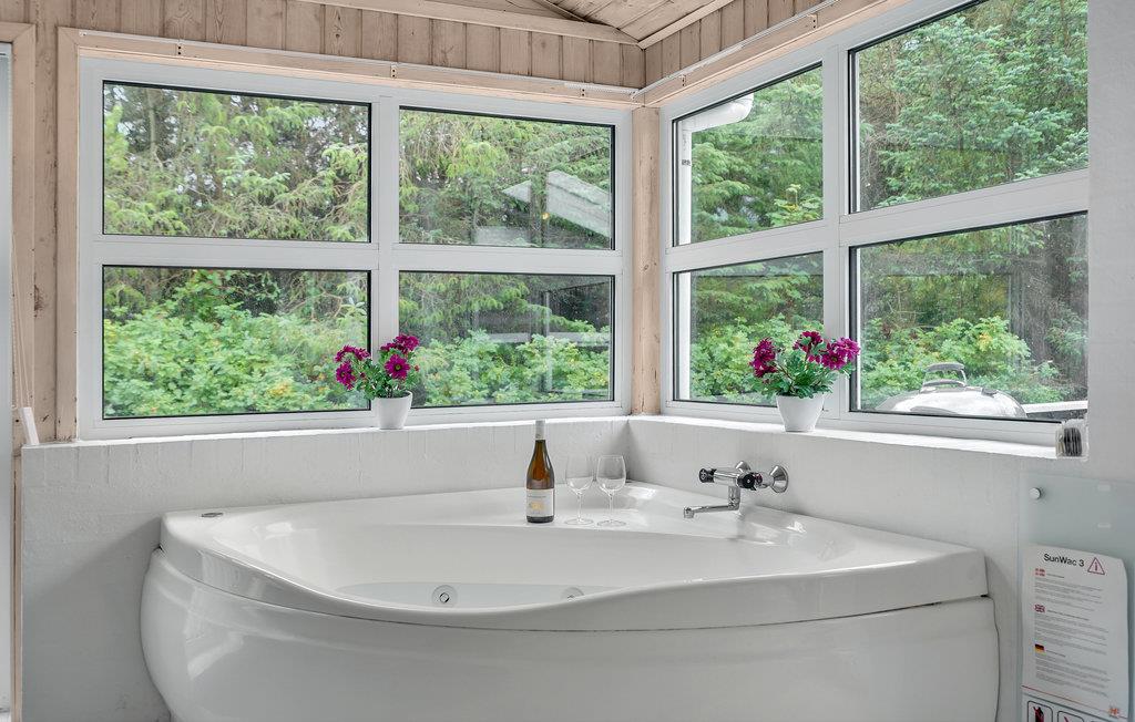 Huset ligger på en stor naturgrund tæt ved en rigtig dejlig badestrand. Rundt om huset ligger der flere store terrasser, hvor I kan nyde solen det meste af dagen. Huset har en poolafdeling med swimmingpool, spabad og sauna. Der er naturligvis også to badeværelser i huset, begge med gulvvarme. Der er også gulvvarme i stue og køkken, børnestue og poolrum. Desuden er der en hyggelig havestue samt en stor hems, der er indrettet med sofaarrangement. Dette hyggelige feriehus er perfekt til en afslappet ferie for flere familier.