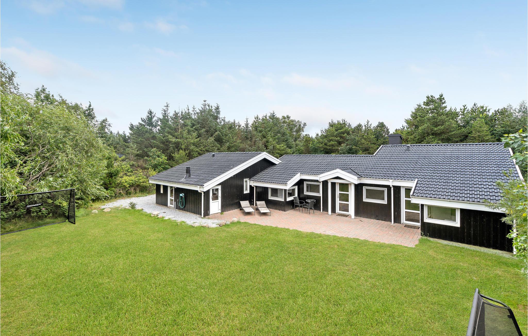 Rummeligt feriehus ved Bratten Strand med pool, sauna og stor naturgrund, perfekt til familier og afslapning.