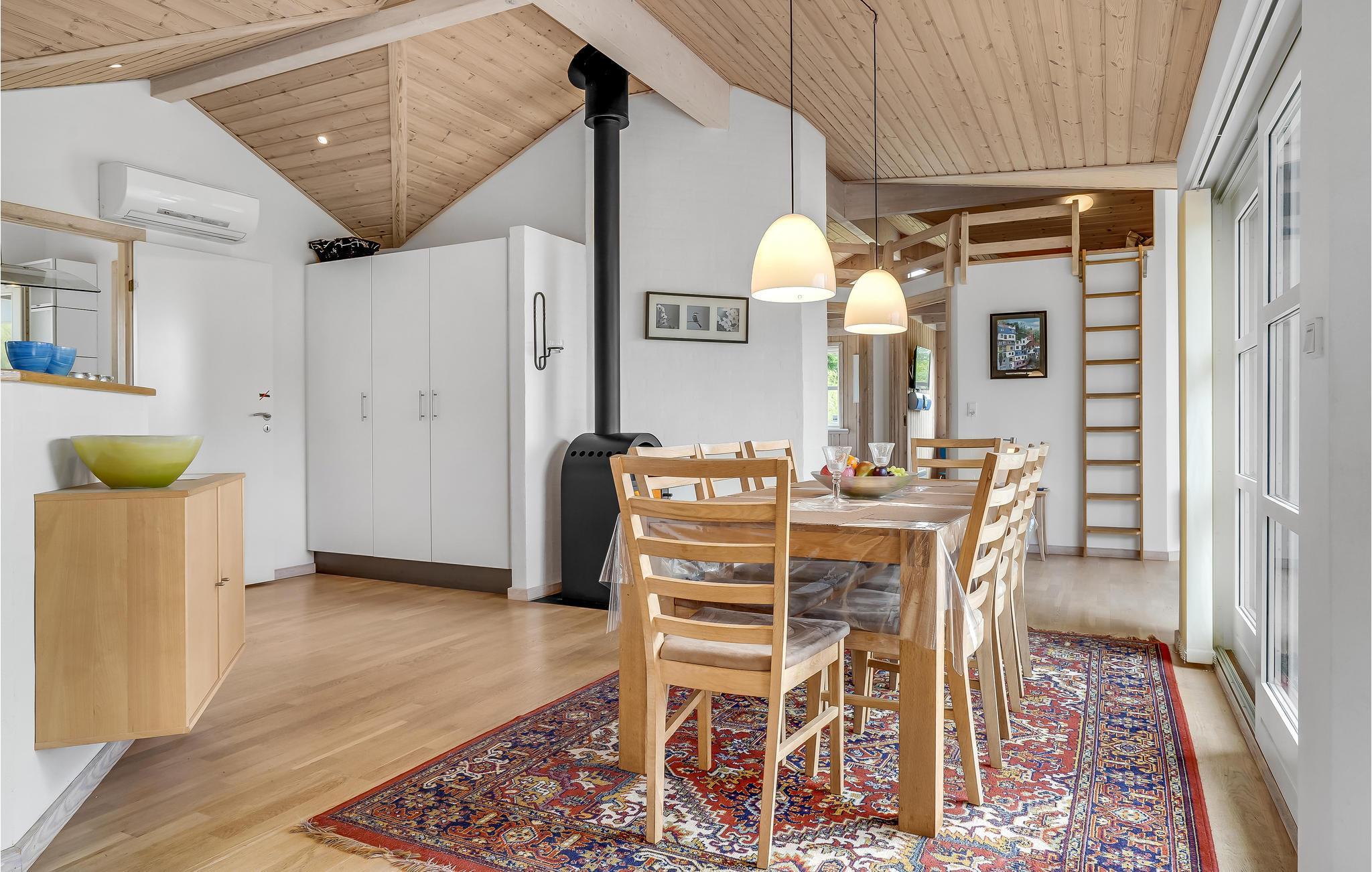 Velkommen til nogle herlige dage på den nordjyske østkyst, hvor I kan få jeres base i dette velindrettede sommerhus. Huset er lyst, luftigt og rummeligt, så her får hele den store rejsegruppe eller to familier gode rammer til at brede sig. Pladsen gør det nemt at fylde feriedagene både med fælles aktiviteter og små alenestunder, hvor alle kan hygge sig med det, de helst vil. På de kølige dage kan I finde sammen om spisebordet i den indbydende stue og give jer god tid til måltiderne, mens ilden knitrer i brændeovnen. Efter en lang dag med udflugter er det herligt at vende hjem til husets faciliteter og læne sig tilbage i sofaen med en god film.