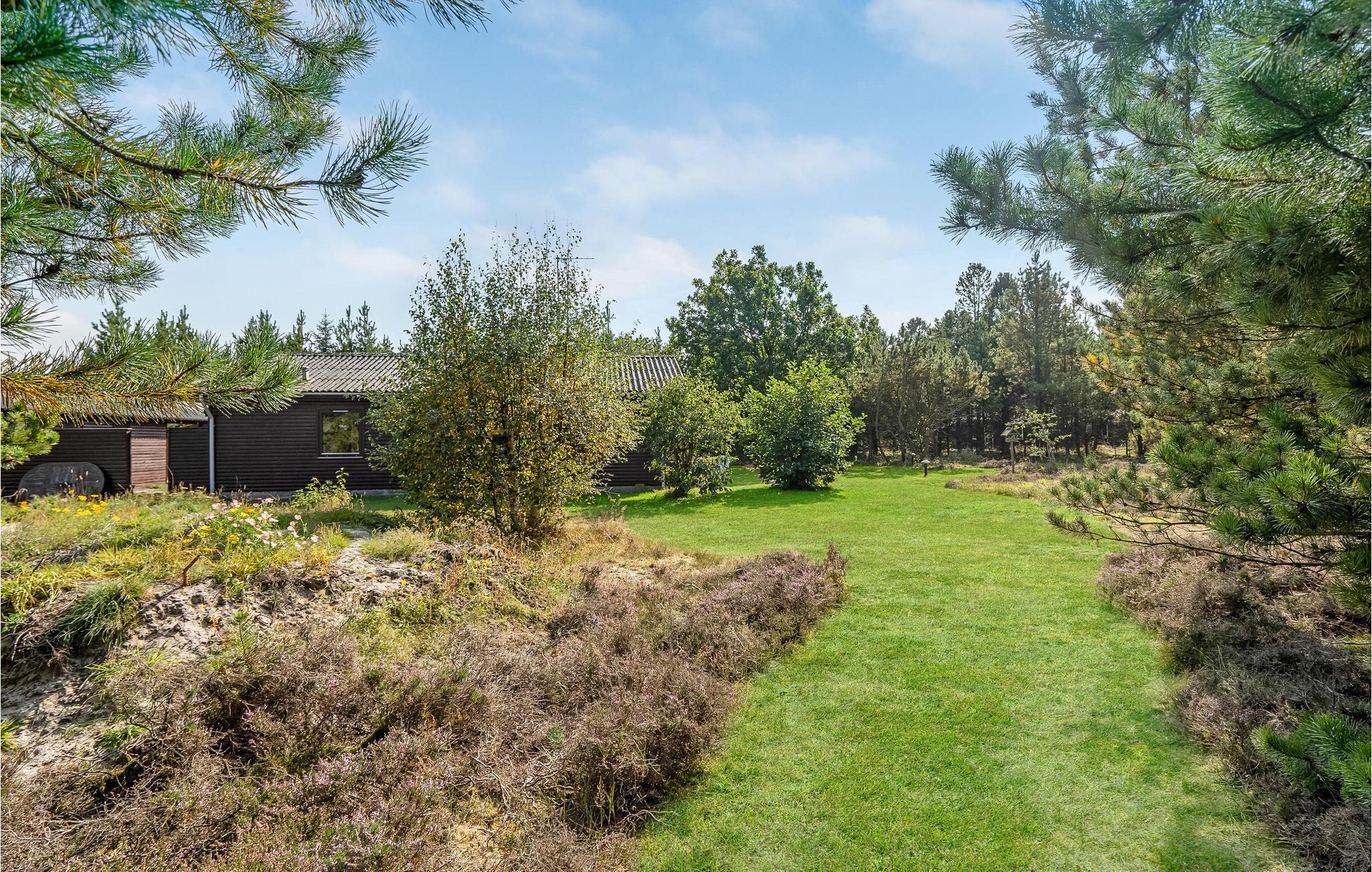 På dejlig stor lyngbeklædt naturgrund tæt på Bratten Strand ligger dette hyggelige feriehus. Her venter jer mange skønne stunder i det åbne opholdsrum, hvor køkken og stue mødes og lyses dejligt op udefra gennem de store vinduespartier. Find jer godt til rette med en god bog eller et brætspil foran brændeovnen og kom helt ned i tempo.