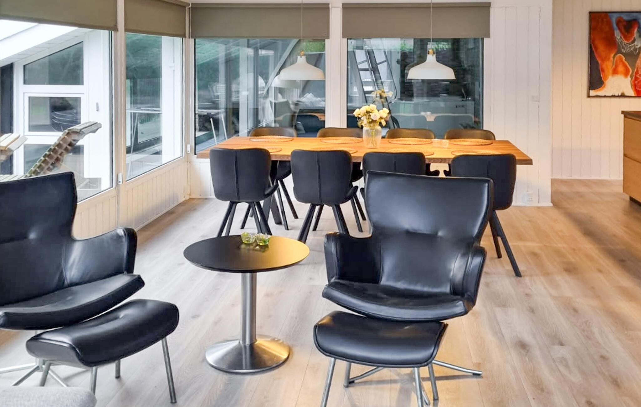 Hyggeligt sommerhus ved Bratten Strand med pool, sauna og tæt på børnevenlig strand.