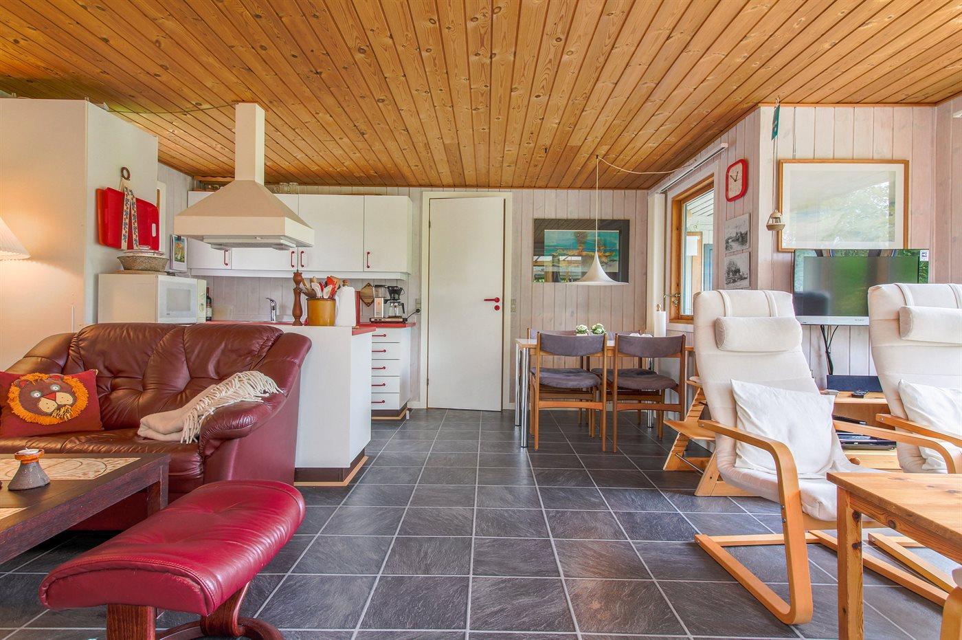Køkkenet er udstyret med 1 køleskab. Der er 4 keramiske kogeplader, varmluftovn, mikrobølgeovn, Airfryer samt opvaskemaskine.