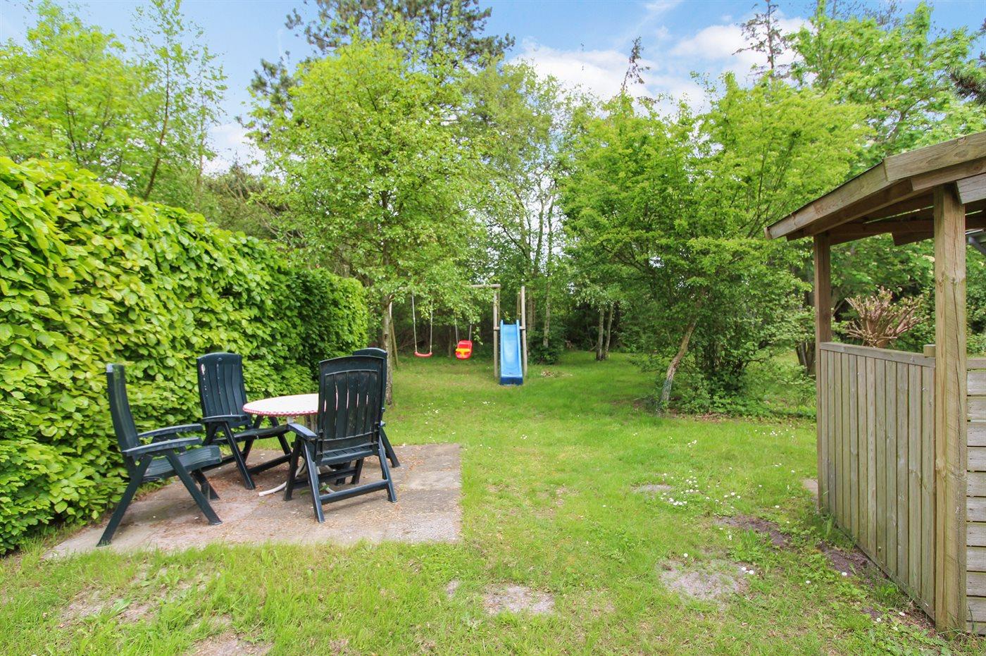 Ferieboligen er beliggende på en 1116 m² stor havegrund. Der er 180 m til havet. Der er en badebro i nærheden. Nærmeste forretning er beliggende i en afstand af 4000 m. Til ferieboligen hører 60 m² terrasseareal. Ligeledes er der adgang til udestue på ca. 20 m2. Der er redskabsrum. Gynge. Sandkasse. Legehus. Rutchebane. Fodboldmål. Bålsted. Udendørs bruser. Parkering ved ferieboligen.