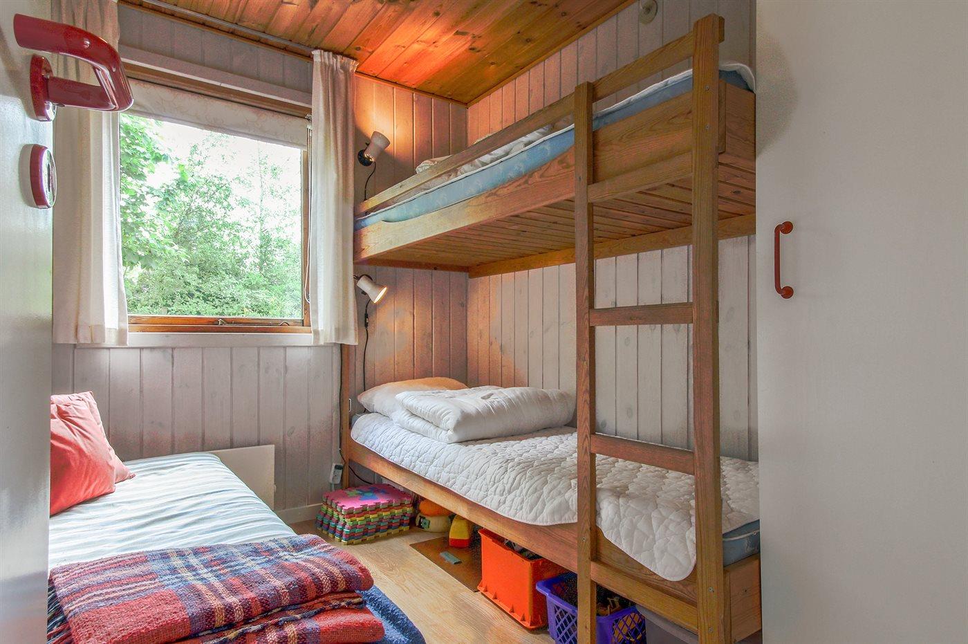 Der er i alt 3 soveværelser. Sovepladserne fordeler sig på: 2 sovepladser i dobbeltseng. 1 soveplads i enkeltseng. 4 sovepladser i køjesenge. 2 af disse sovepladser befinder sig i et anneks. Derudover er der 1 stk. barneseng.