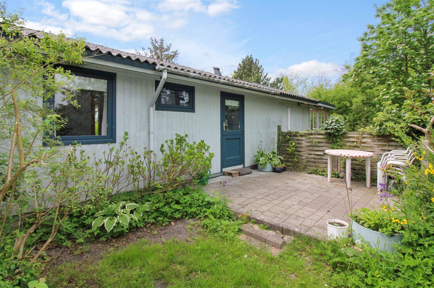 Hyggeligt ældre sommerhus beliggende på en dejlig lukket grund tæt ved vandet.