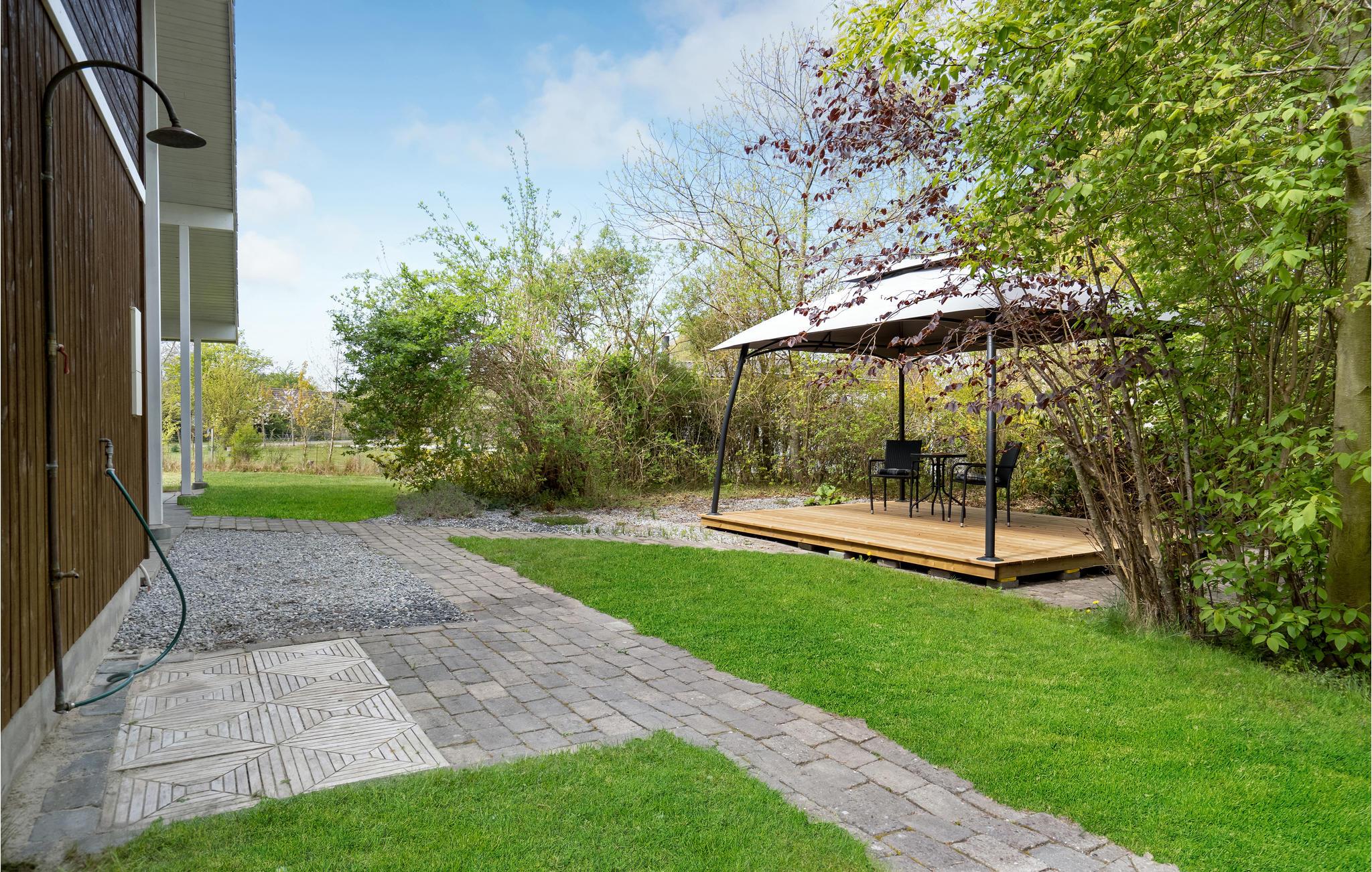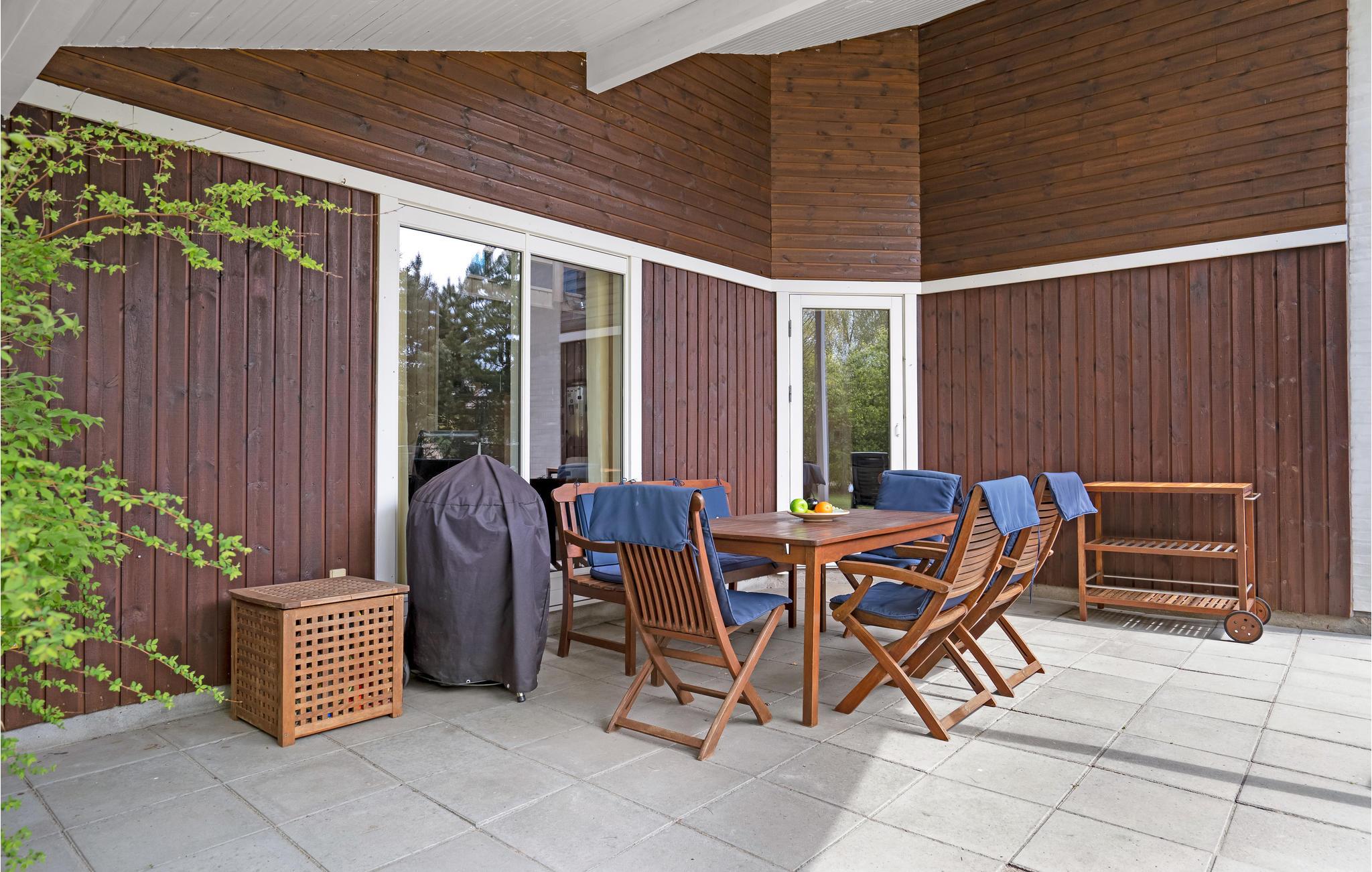 Nyd en dejlig tid udendørs på den åbne og overdækkede terrasse. Grill sammen eller nyd solen og roen i de medfølgende liggestole.