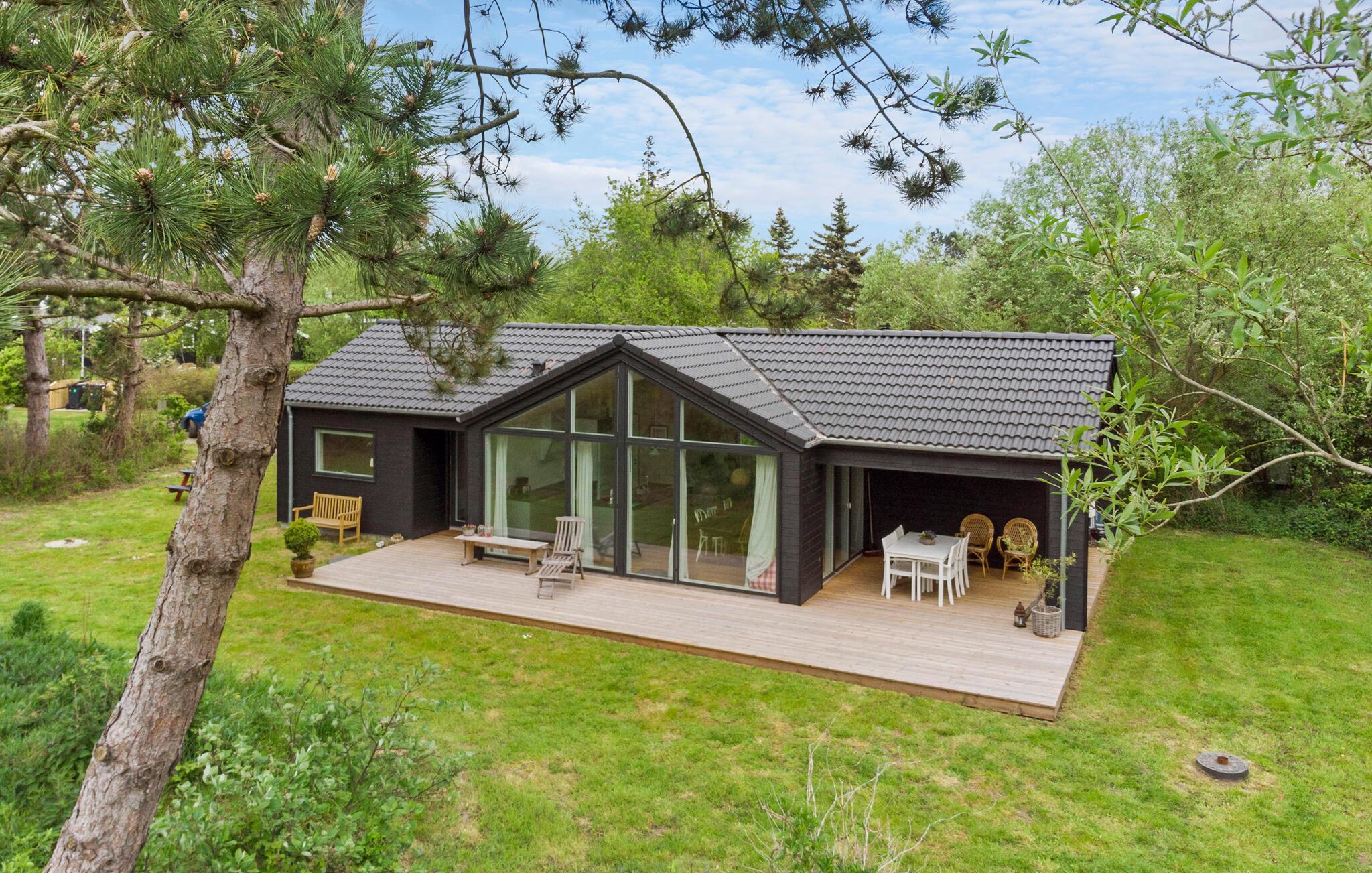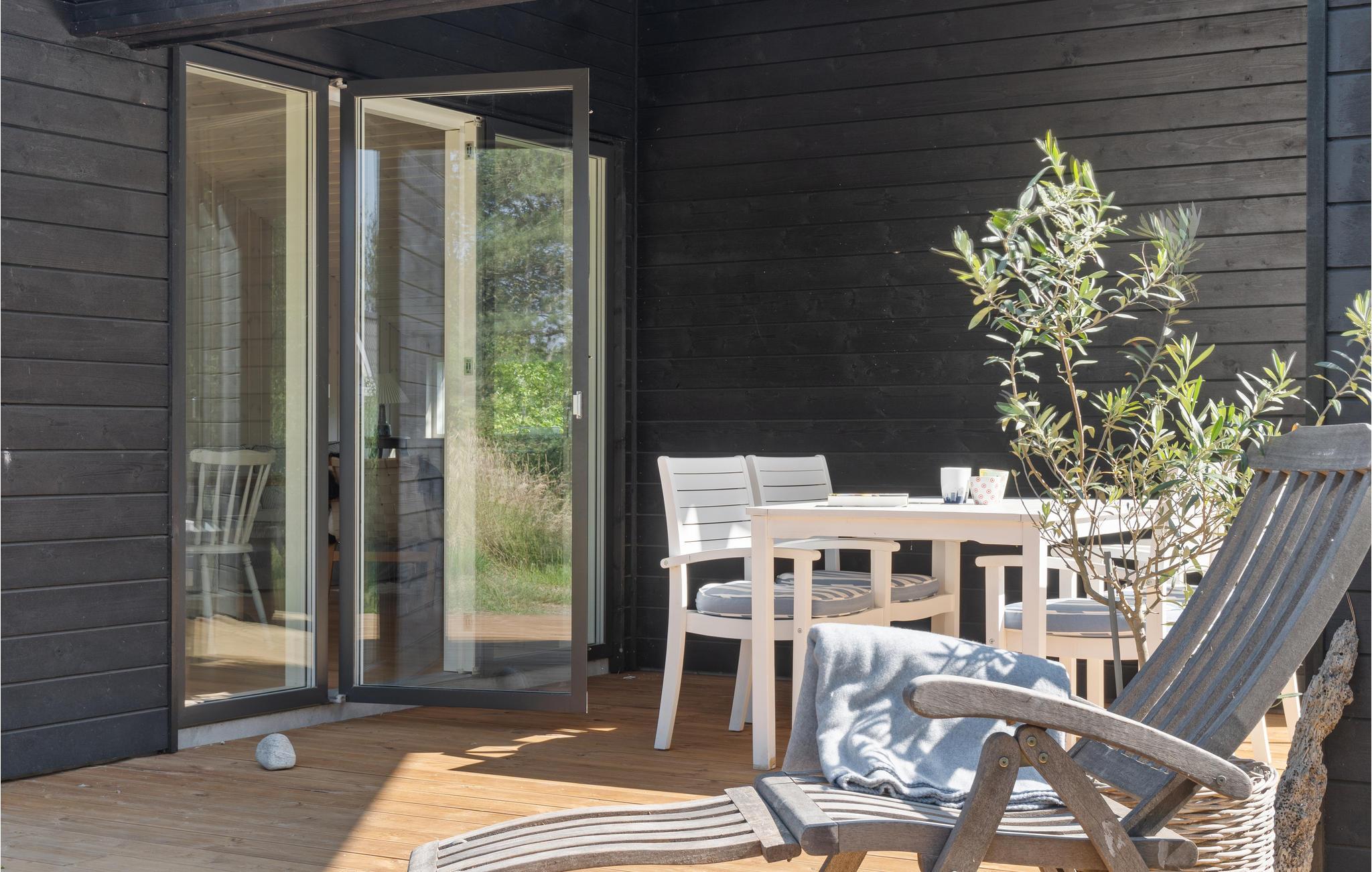 Komfortabelt træhus nær havet med moderne faciliteter og dejlig terrasse i smukke omgivelser på Lolland.