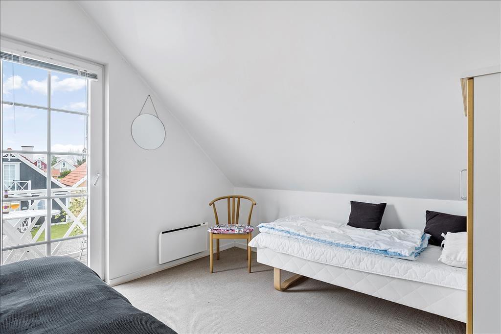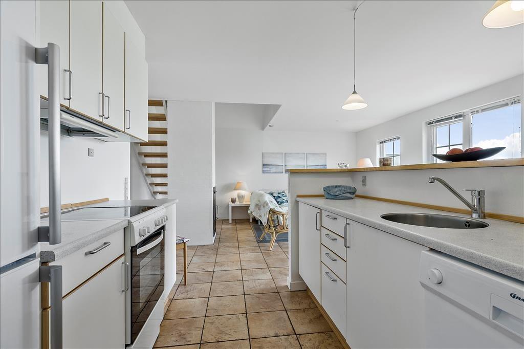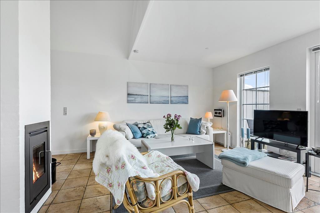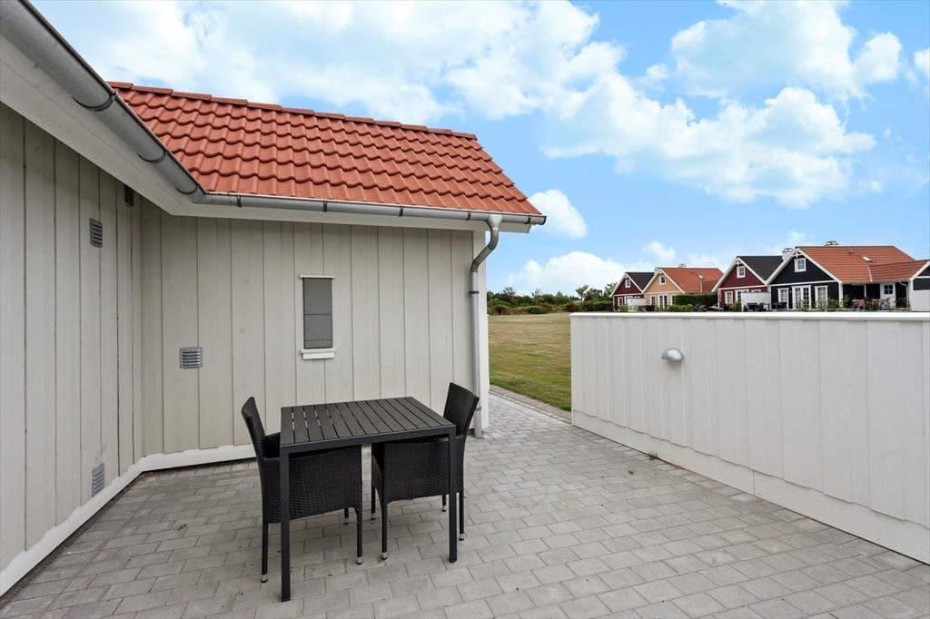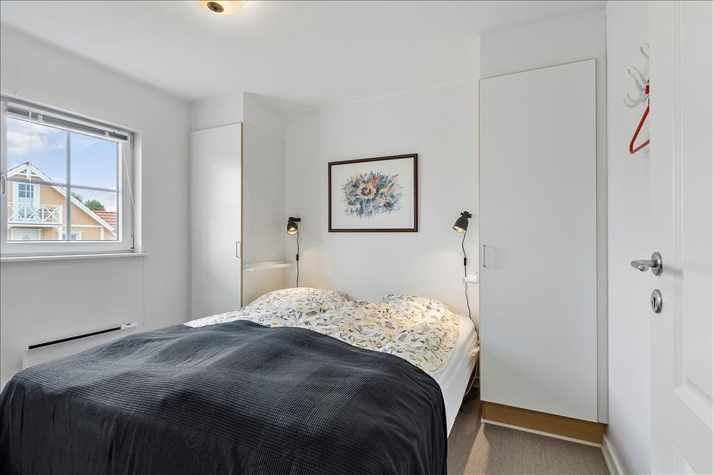 Dette flotte kædehus i 2 etager med både spa og sauna ligger sommerhusområdet Bro Strand. Det moderne træhus er smagfuldt indrettet og indeholder i stueetagen en hyggelig opholdsstue med indmuret brændeovn, moderne køkken i åben forbindelse med opholdsstuen, 1 soverum, badeværelse med spa og indgang til sauna samt bryggers med vaskemaskine. 1.salen indeholder yderligere 2 soverum og et gæstetoilet. Havudsigt fra 1. sal. Fra opholdsstuen er der udgang til terrassen og til de fælles friarealer. Huset ligger i en afstand af kun 200m fra vandet.