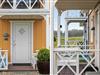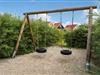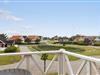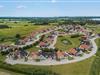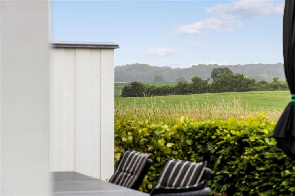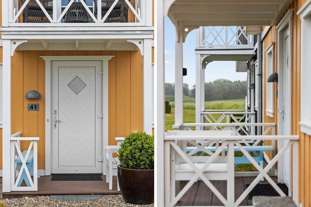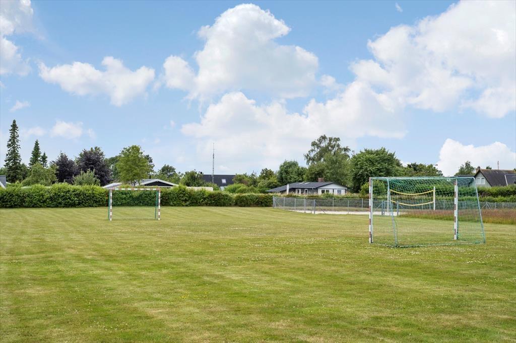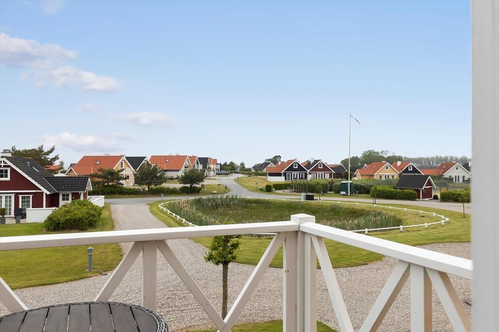 Udenfor finder du et grønt fællesareal, der danner rammen om udelivet i dette sommerhusområde. Her kan børnene lege frit, mens de voksne nyder en stille stund på terrassen med udsigt til de omkringliggende marker. Terrassen er perfekt til morgenkaffe, frokost under åben himmel eller en afslappende aften med grill og hyggeligt samvær. Den fredelige atmosfære og den friske luft fra det nærliggende hav sætter scenen for en afslappende ferie, hvor tempoet automatisk sænkes.