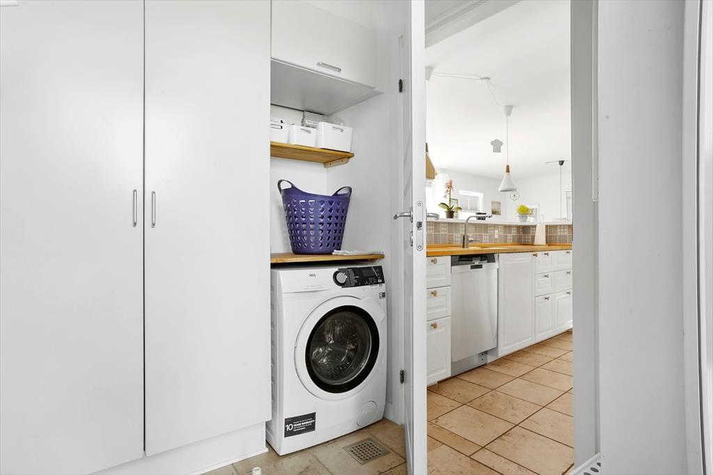 Sommerhus i Varbjerg Strand, Fyn med øer, med plads til 6 voksne. Der er en hyggelig indretning med bl.a. brændeovn, og du finder desuden vaskemaskine, opvaskemaskine og tørretumbler i boligen.
