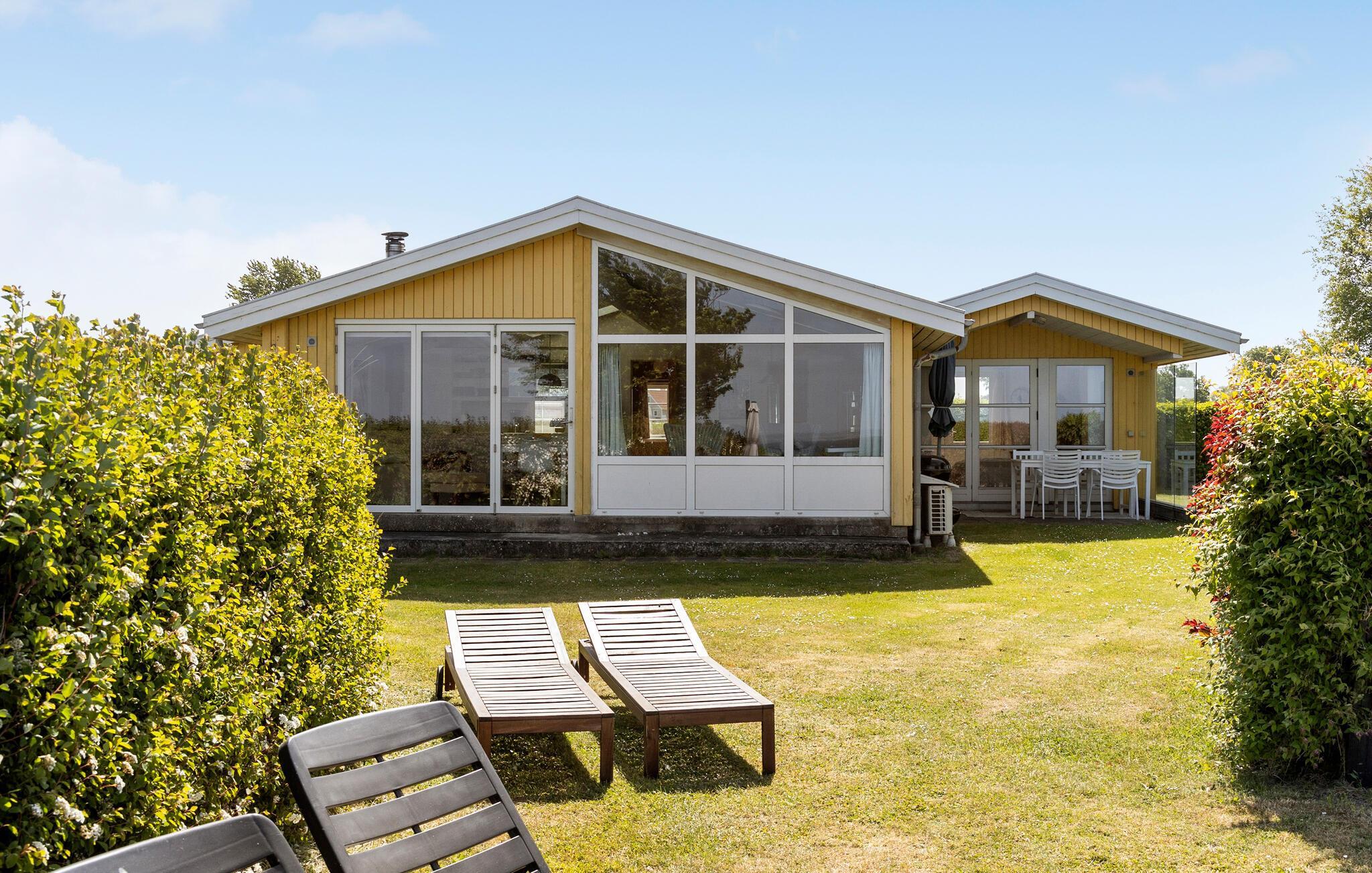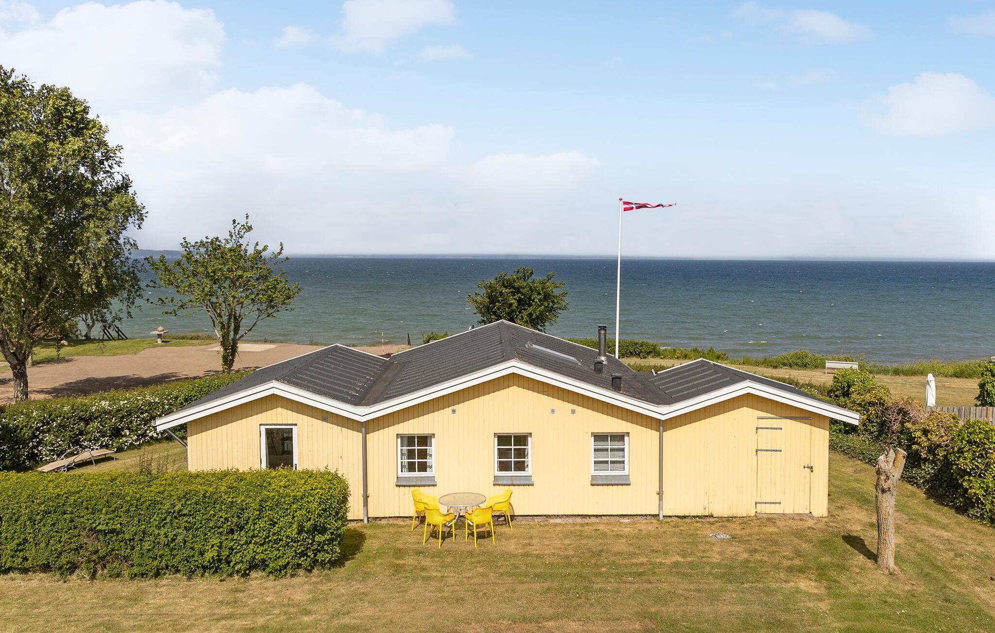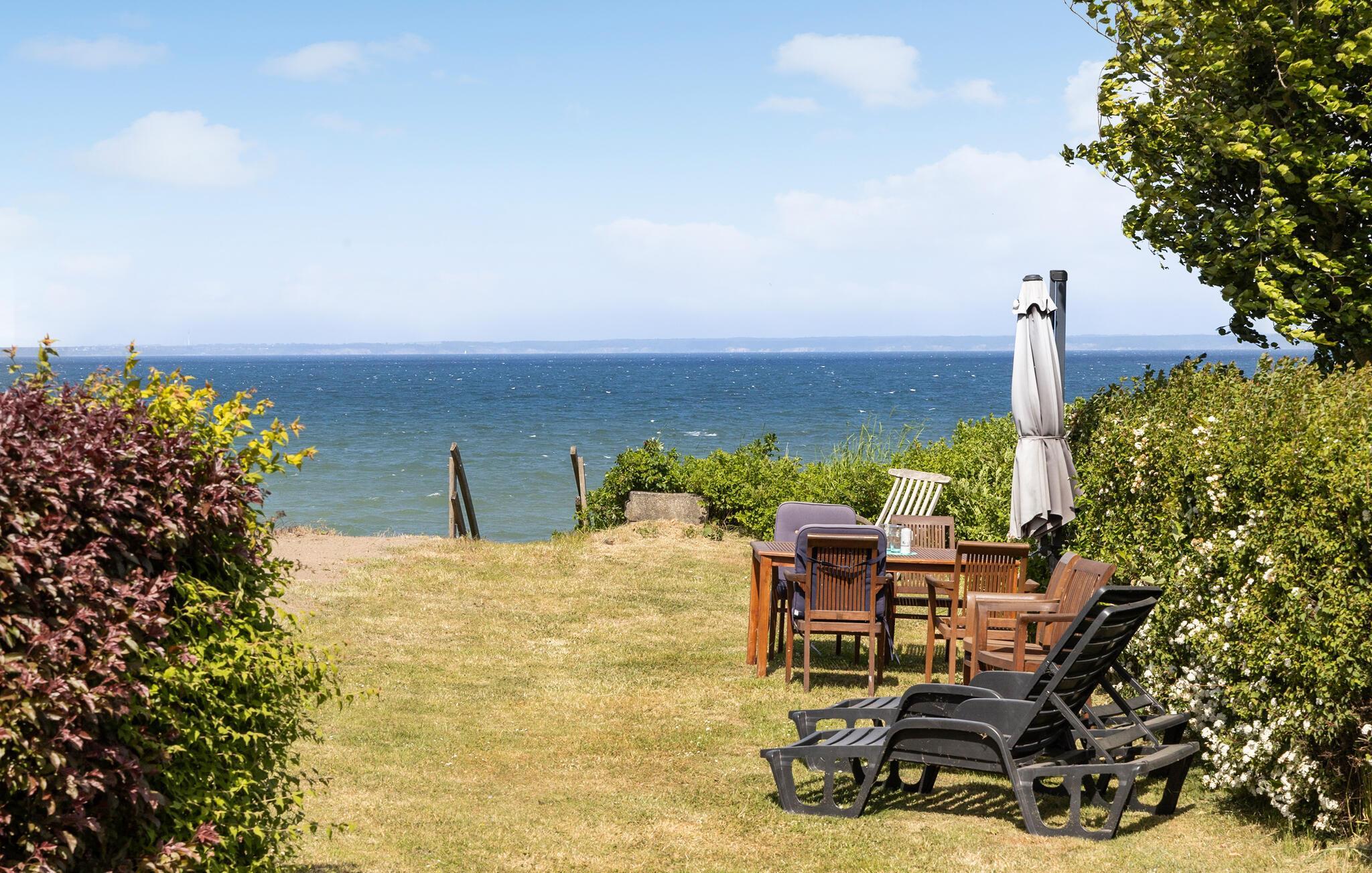 Hyggeligt feriehus med panoramisk havudsigt og direkte adgang til stranden i Brenderup Fyn.