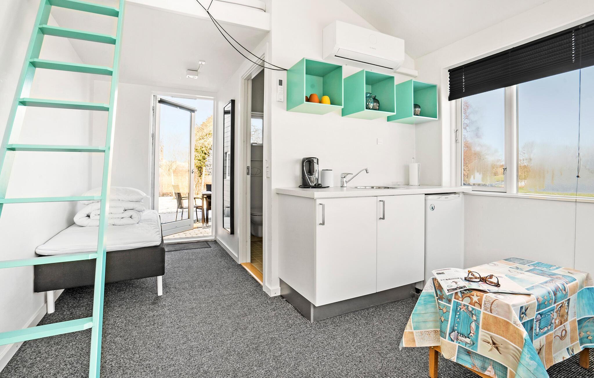 Soveværelse (nr. 1) - 2 Sovepladser. (Dobbeltseng(e)). 1 Soveplads. (Etageseng(e)).
