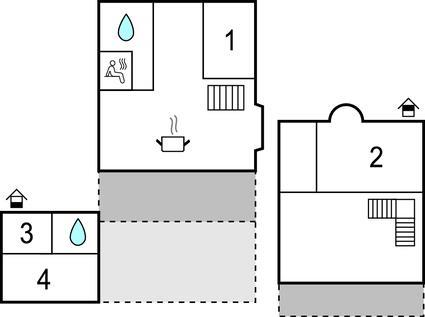 På 1. sal er der en vestvendt balkon med udgang fra stuen, ligesom der er en lille balkon fra soveværelset mod øst. Alkoven er ligeledes på 1. sal og har dør ud til stuen. Af husets 92 kvm. er de 20 kvm. anneks, som indeholder soveværelse med dobbeltseng, soverum med 2 køjer samt badeværelse. Annekset og hovedhuset er forbundet med en dejlig stor åben terrasse, hvor man kan nyde mange dejlige timer.