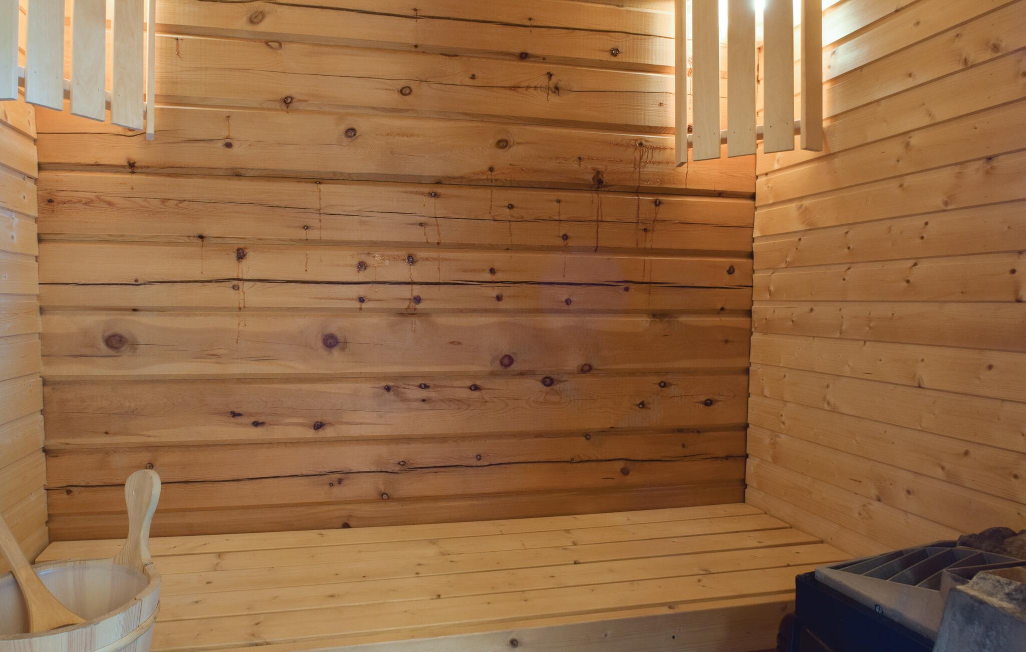Eksklusiv finsk bjælkehytte, som er det højest beliggende feriehus i den oprindelige del af Bukkemose.