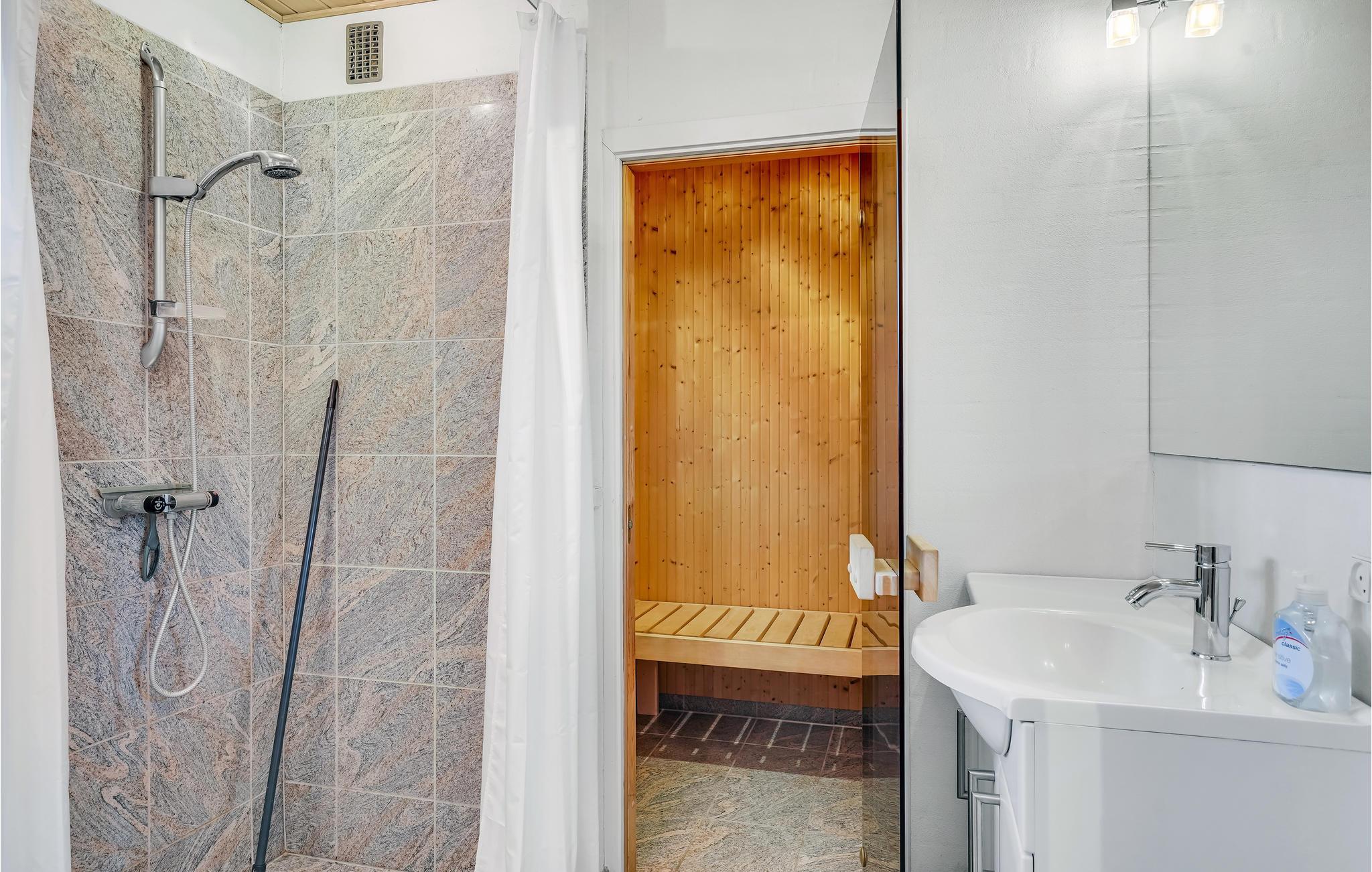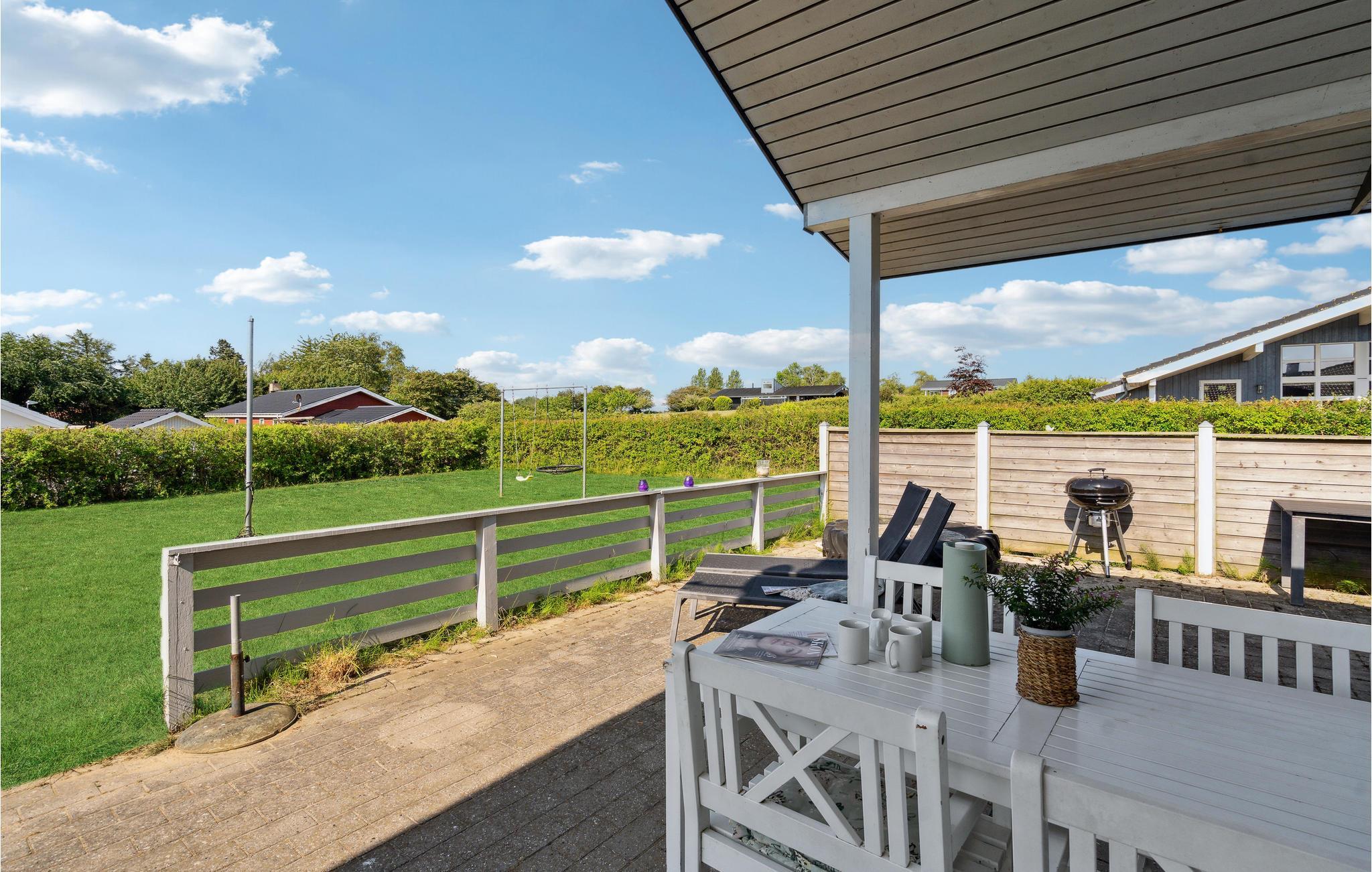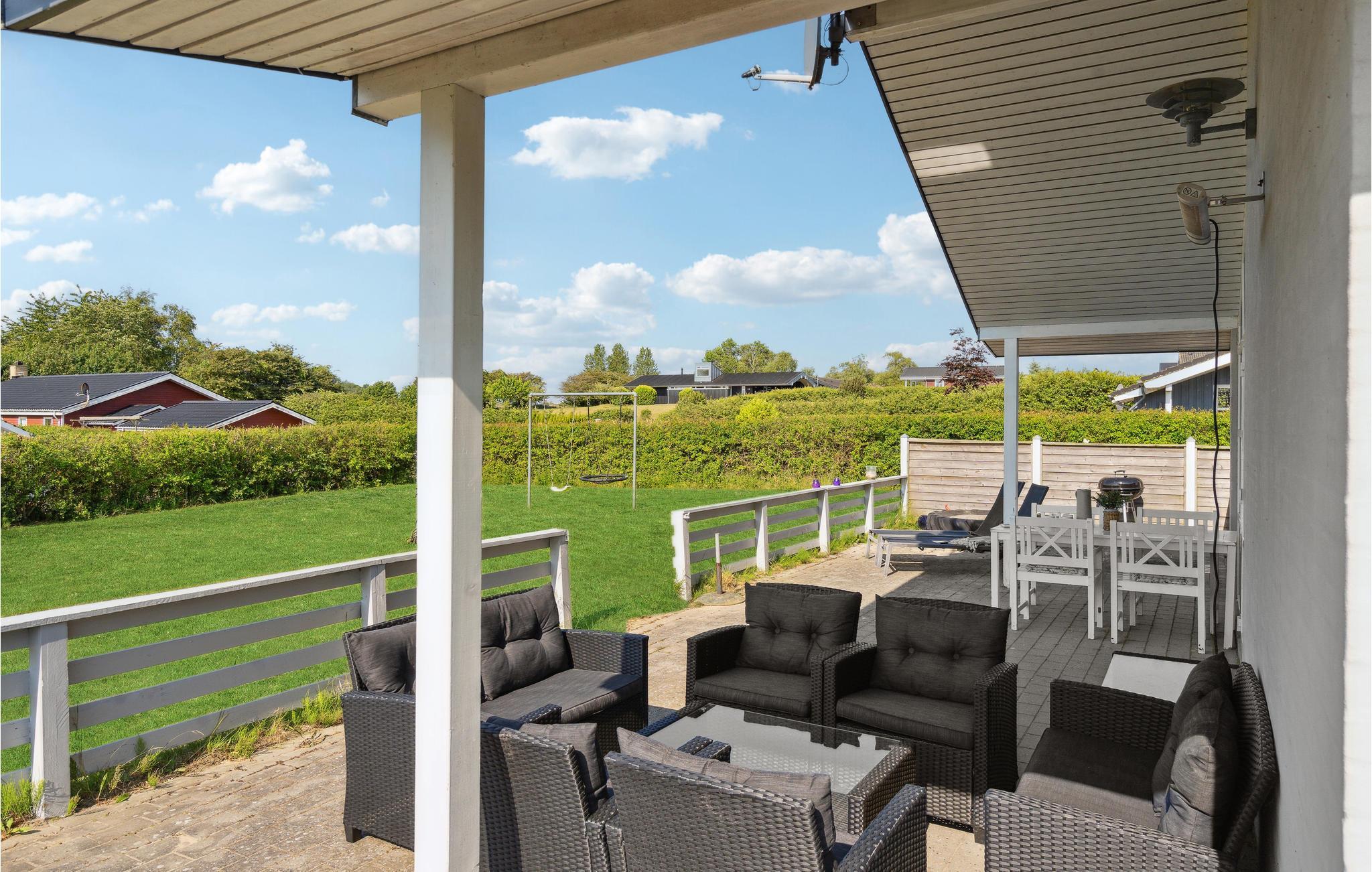 Hold en afslappende ferie i dette skønne feriehus, som byder på plads til jeres store familie eller to familier, der holder ferie sammen. Huset fremstår smukt, lyst og indbydende, så I vil hurtigt føle jer godt tilpas. Udnyt den store mængde plads i stuen og vær sammen om madlavningen i det åbne køkken, slap af foran brændeovnen og læg fødderne op eller spil kort ved spisebordet. I kan slappe af på badeværelset med en tur i badekarret med spabad funktion og eller blive varmet godt igennem i saunaen. Så snart de første solstråler kommer frem, kan I nyde tiden på terrassen om morgenen, spise morgenmad og planlægge jeres dag. Se på jeres børn fra den delvist overdækkede terrasse, mens de spiller bold eller gynger og lidt senere kan I gå til en tur til stranden.