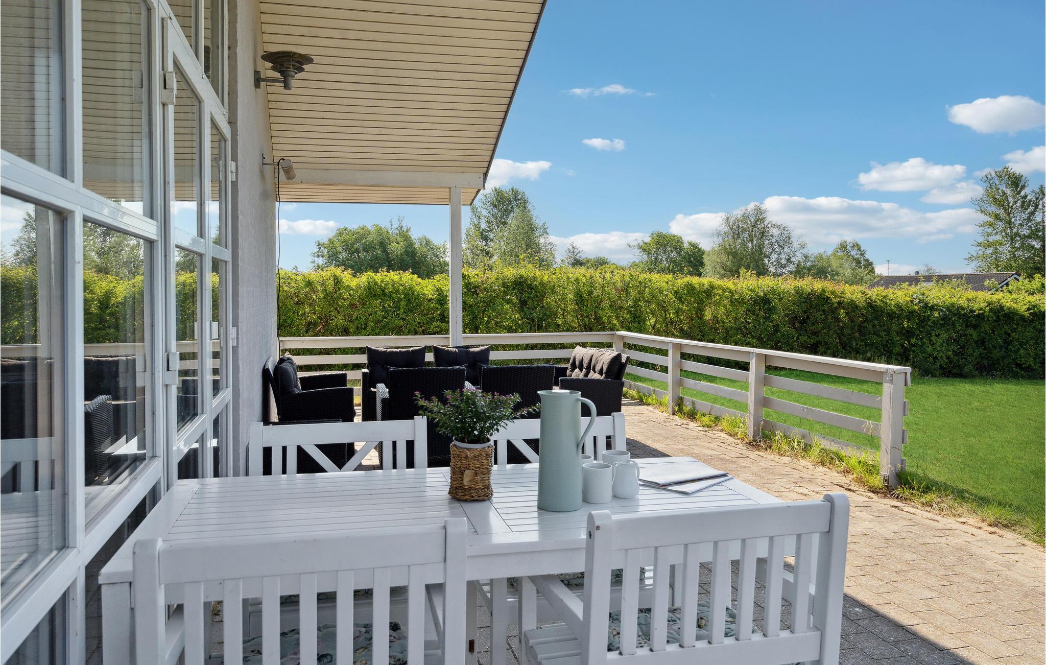 Smukt og lyst feriehus i Bukkemose med sauna, spabad og stor terrasse tæt på havet og golfbane.