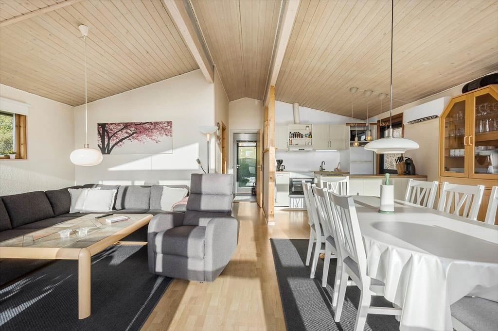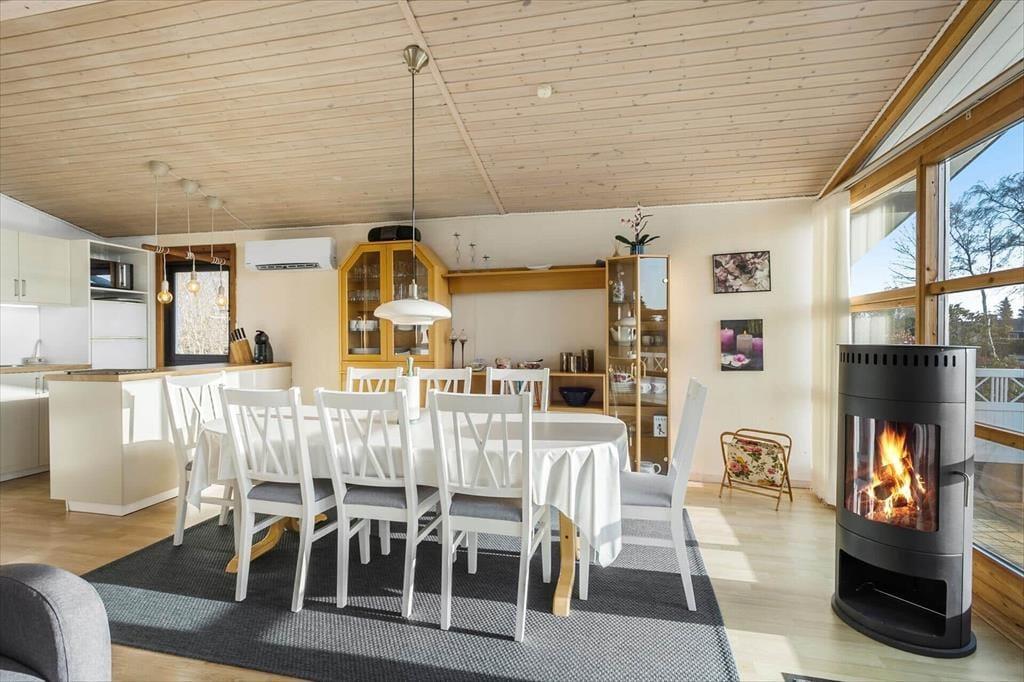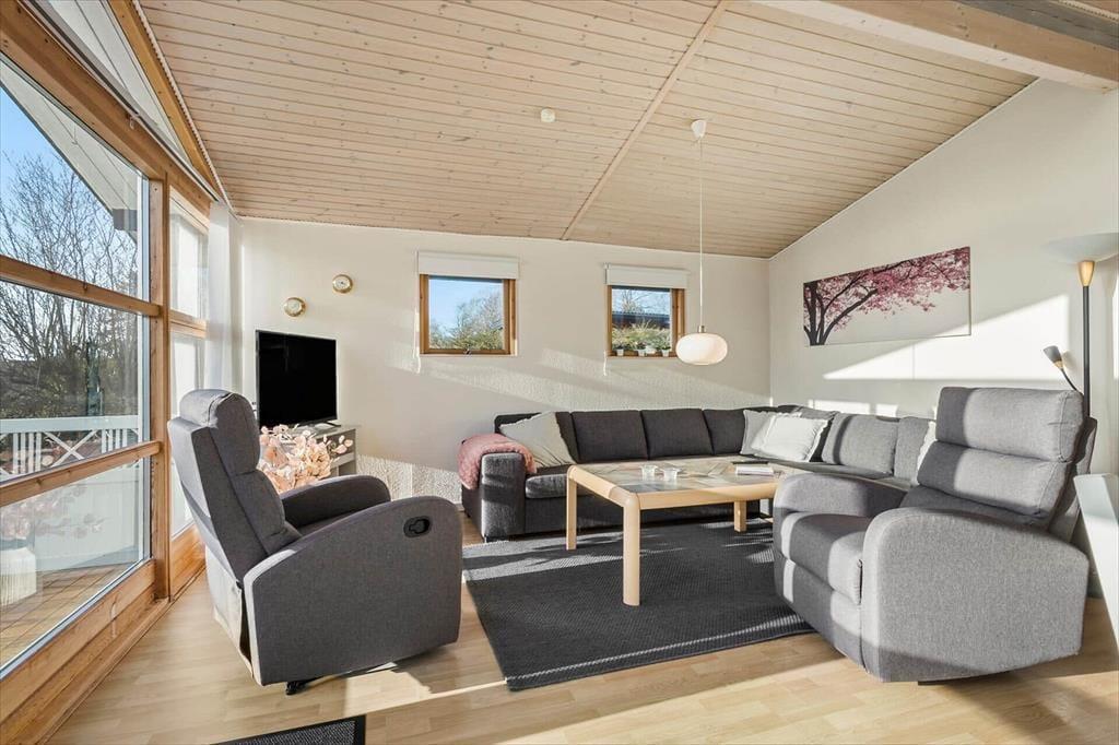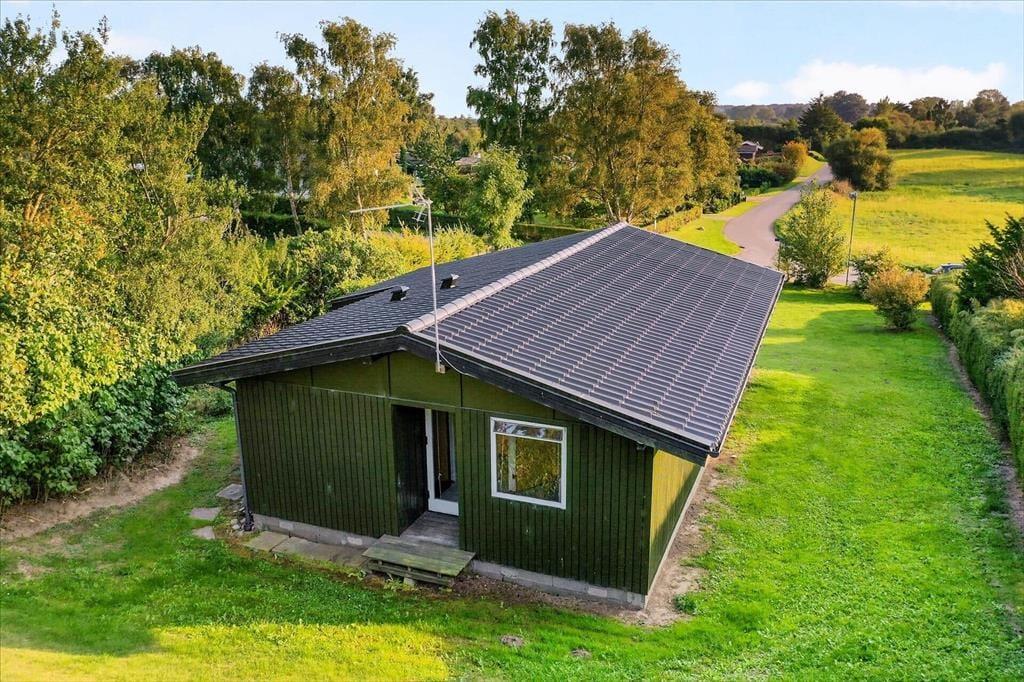 På den skrånende grund kan du nyde det gode vejr fra den hyggelige terrasse, hvor udsigten over området giver ro i sjælen. Her kan du starte dagen med en kop kaffe, mens du lytter til fuglesang fra den nærliggende skov. I løbet af dagen kan du tage turen til den nærliggende strand, hvor børnene kan lege i sandet og soppe i vandkanten. Efter en dag fyldt med aktiviteter er det skønt at vende hjem til sommerhuset og tænde op i grillen, mens solen langsomt sænker sig over landskabet. Terrassen er det oplagte sted at tilbringe sommeraftenerne, og her er rig mulighed for både at nyde roen og naturen omkring jer.