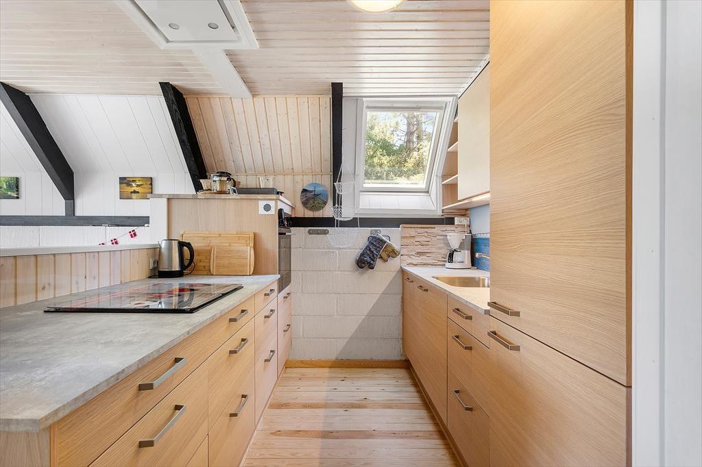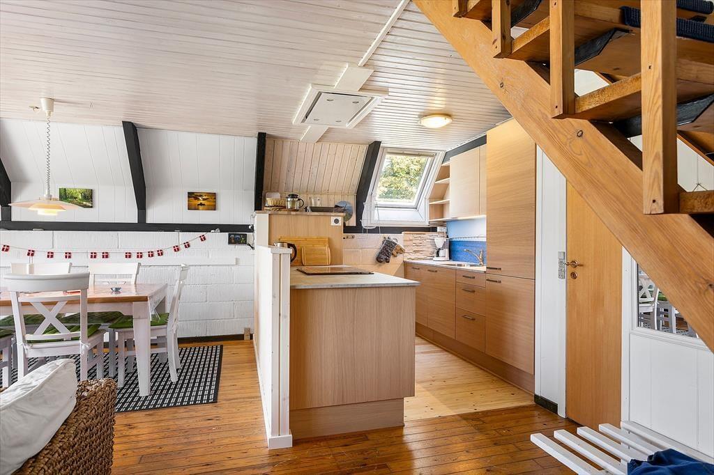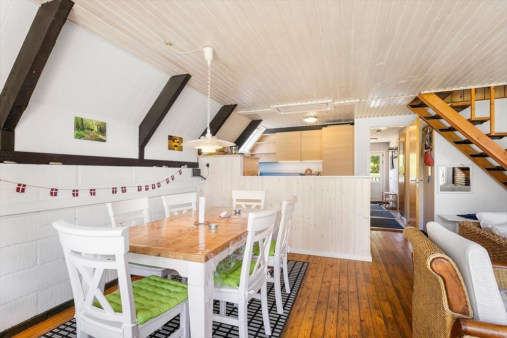 Når du træder ind i dette hyggelige sommerhus, bliver du mødt af rigtig sommerhusstemning, der straks får dig til at føle dig hjemme. Sommerhusets stue er det perfekte sted at samles med familien til hyggelige aftener foran brændeovnen, hvor varmen og flammernes dansende skær skaber den perfekte ramme for en afslappende ferie. Køkkenet, som er integreret i stuen, er godt udstyret til at tilberede alle dagens måltider, og spisepladsen indbyder til lange middage med snak og latter. Med tre soveværelser er der rigeligt med plads til, at op til seks personer kan sove godt og trygt om natten.