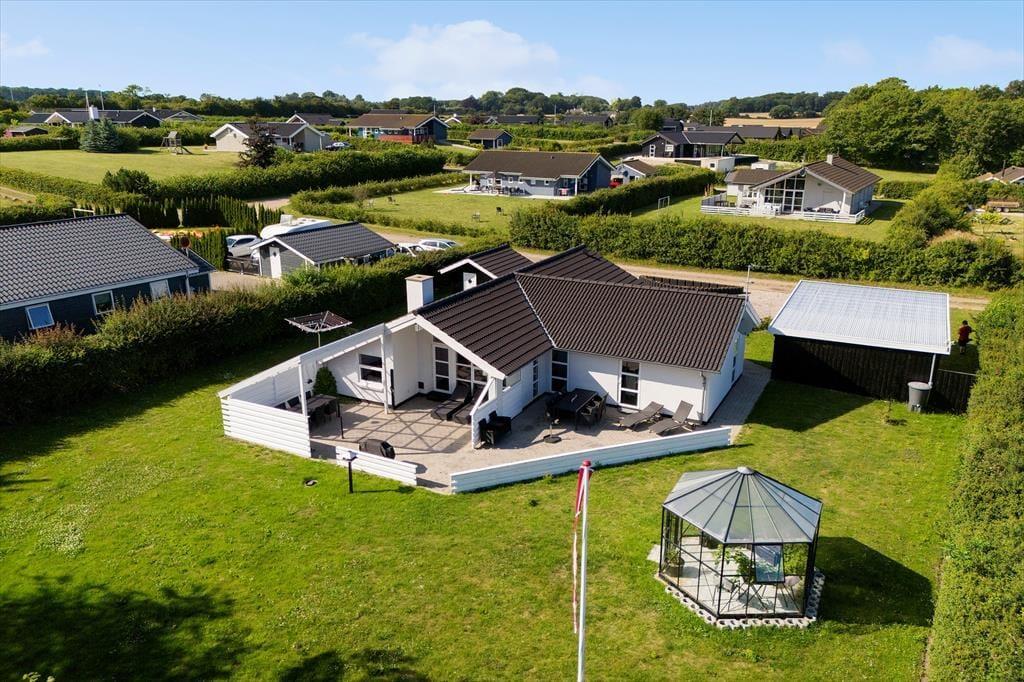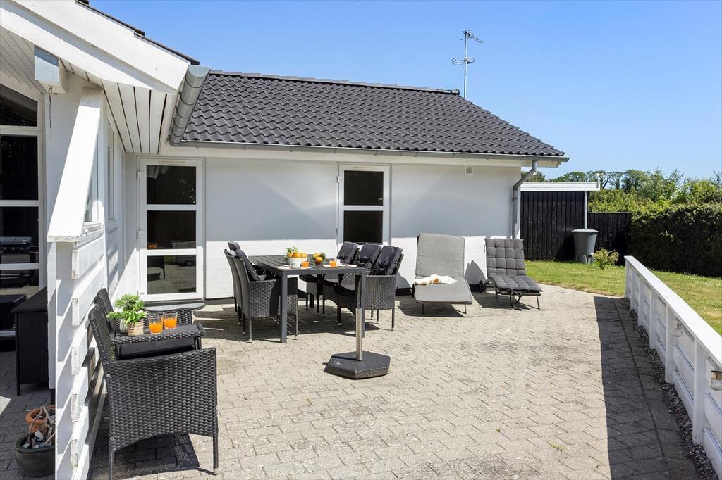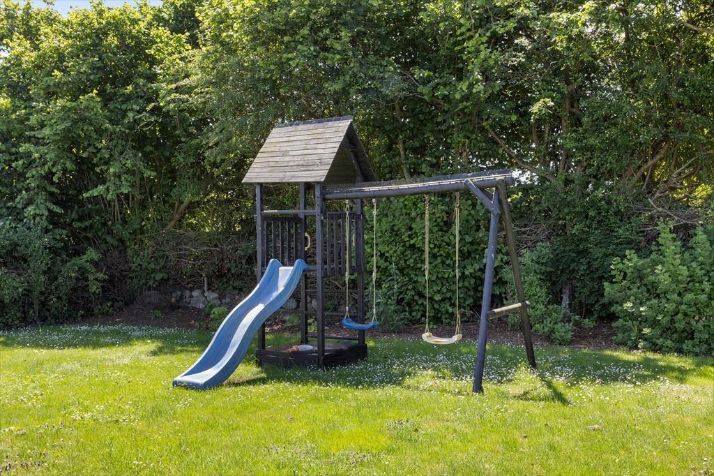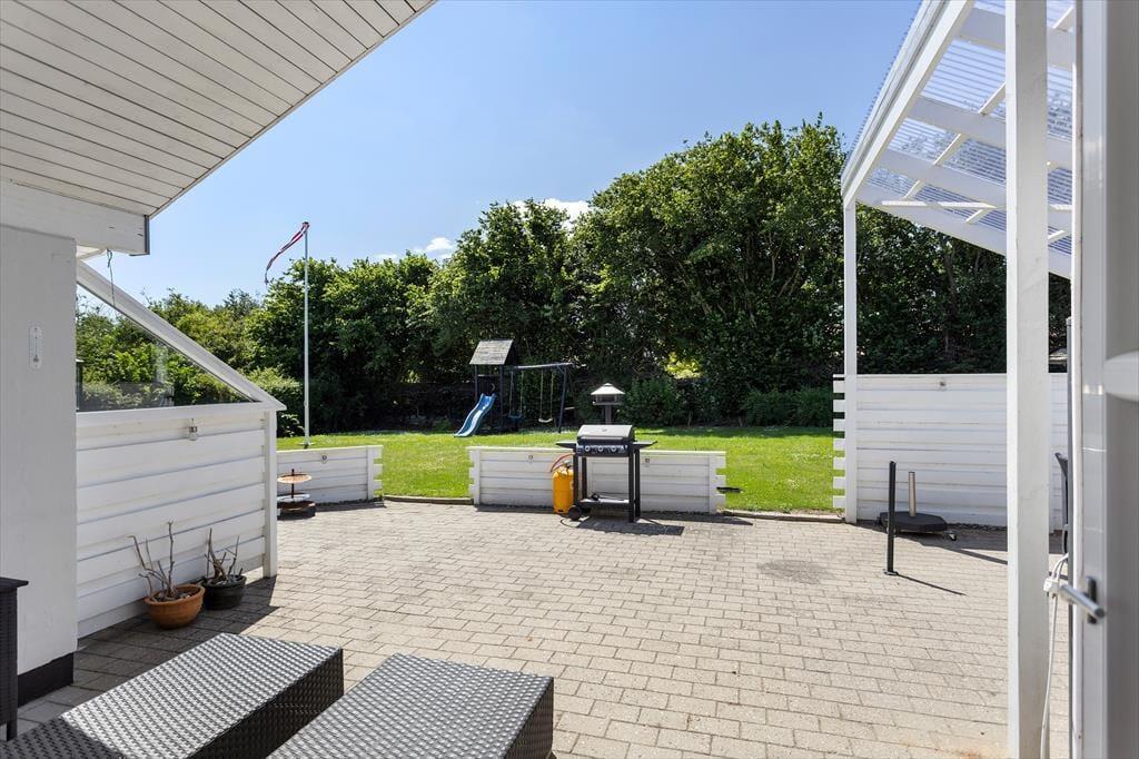Udenfor venter et skønt og børnevenligt udeområde med plads til både leg og afslapning. Nyd feriedagene på den delvist overdækkede terrasse, hvor du kan grille og samles til måltider under åben himmel, mens børnene boltrer sig i sandkasse og på gyngen. Der er også både petanquebane og bålsted, så I kan hygge jer sammen i aftenskæret med ristede skumfiduser og gode historier. Den tilhørende carport gør det nemt og bekvemt at komme til og fra, og det grønne område omkring huset giver en fredelig ramme for ferien, uanset om I er til afslapning i solen eller aktiviteter for store og små.