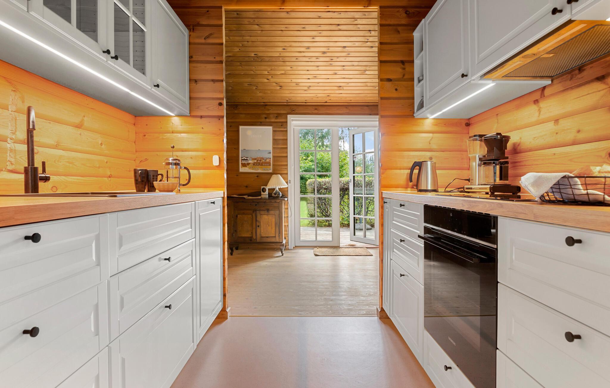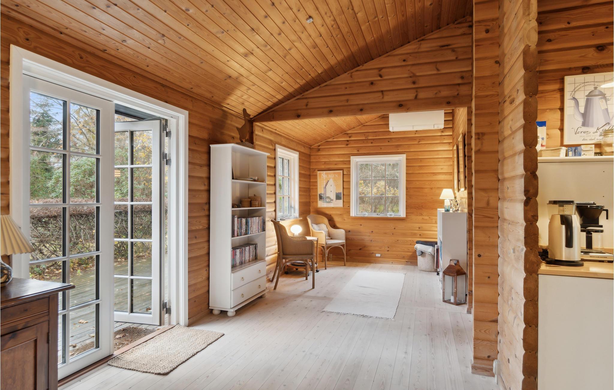 I idylliske Ålbæk ved Bunken Strand ligger dette træhus med brændeovn og stor naturgrund.