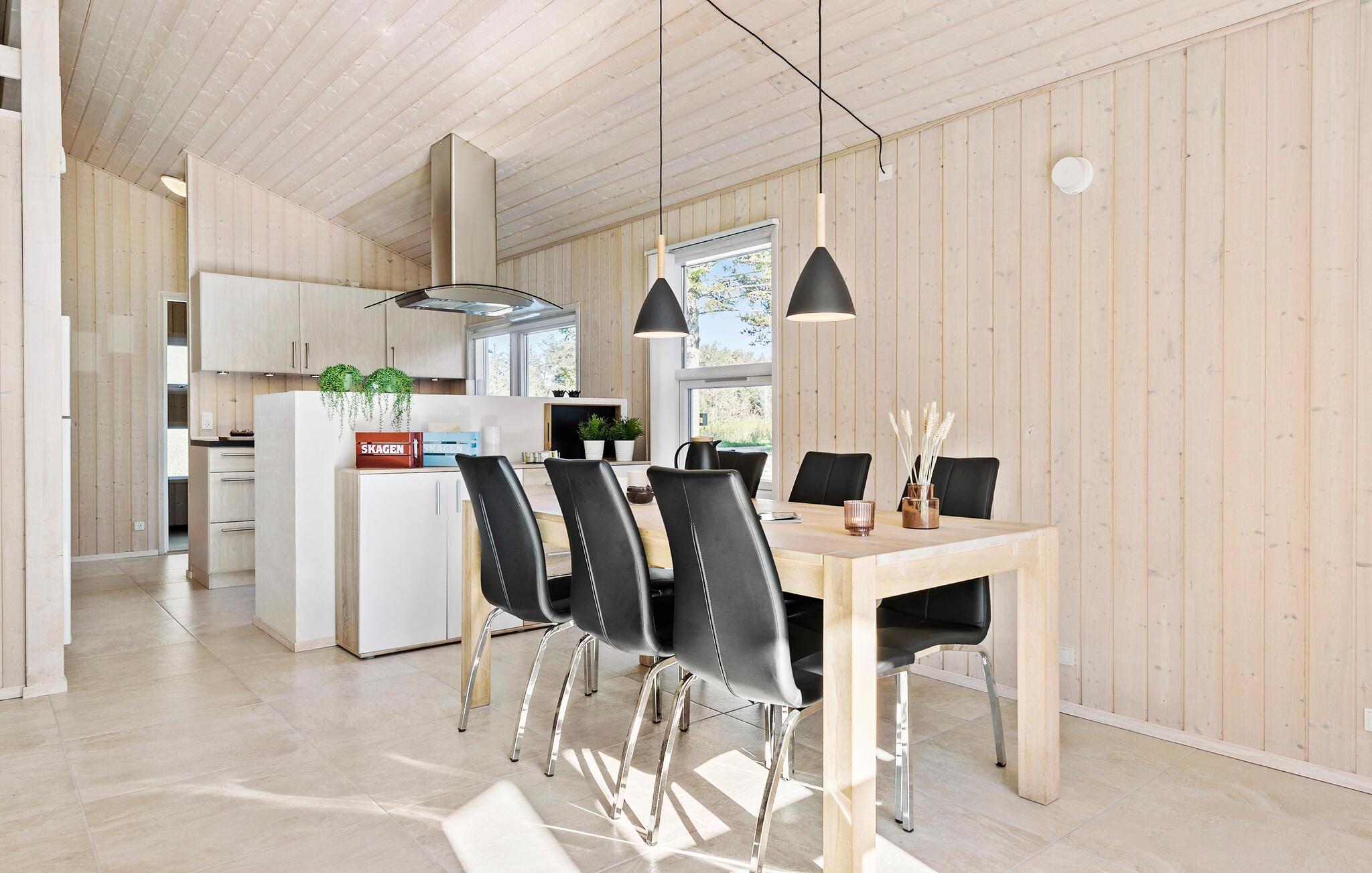Velkommen til dette attraktive træhus, der ligger i dejlige omgivelser på en stor grund lidt nord for Ålbæk. Indvendigt emmer det af hygge med gennemtænkte indretningsløsninger, velholdte træpaneler og store vinduespartier, der giver et lækkert lysindfald til den åbne stue og udsigt til omgivelserne. Nyd godt af det veludstyrede køkken og gør madlavningen til et sjovt fællesprojekt, mens andre dækker op til et hyggeligt måltid ved spisebordet. Senere kan I hive brætspillene frem eller trække over i sofaen med snacks og en god film på tv'et, mens I lægger planer for de kommende dage.