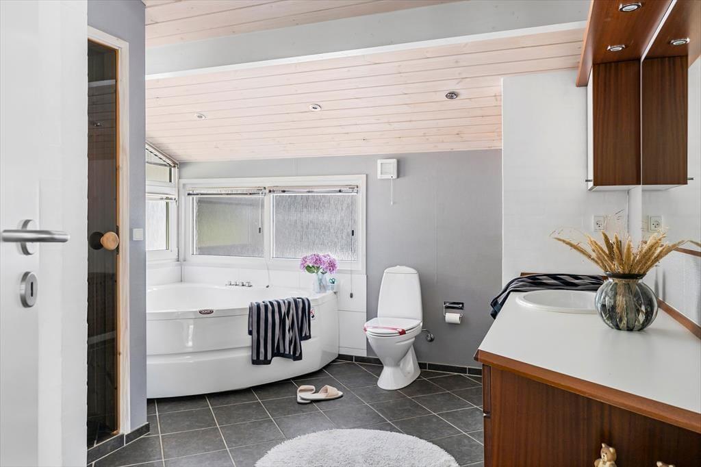 Sommerhuset er omgivet af en smuk naturgrund, der giver dig mulighed for at nyde udelivet i fulde drag. Den rummelige terrasse er perfekt til alt fra morgenkaffen til hyggelige grillmiddage, og børnene har masser af plads til leg og boldspil på den grønne plæne. Med flere solrige kroge og skyggefulde områder er der altid et sted, der passer til dagens stemning. Den nærliggende skov og det rolige kvarter gør det oplagt at tage en afslappet gåtur og bare nyde freden i de naturskønne omgivelser.