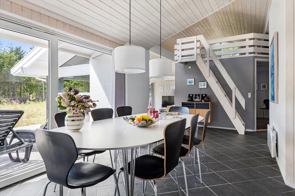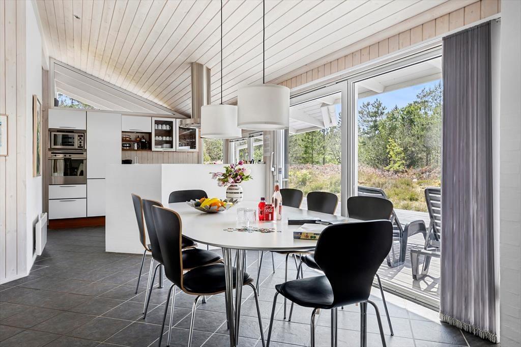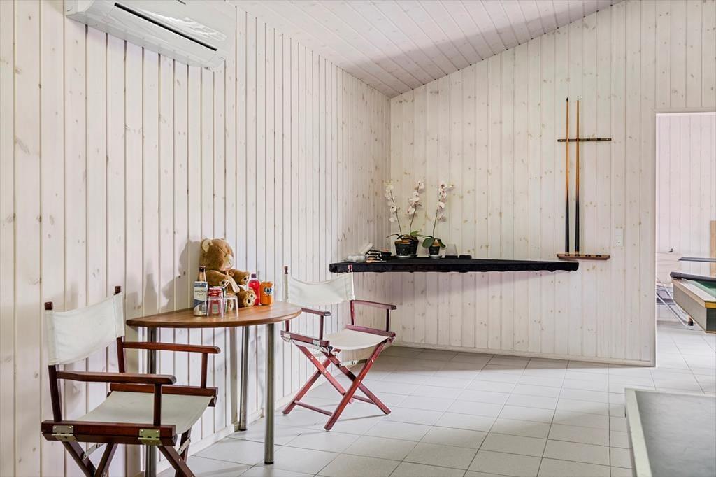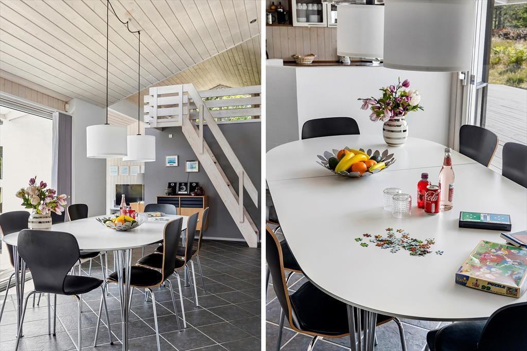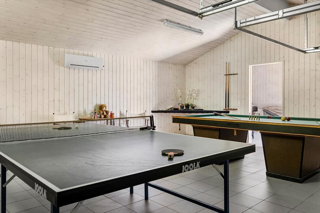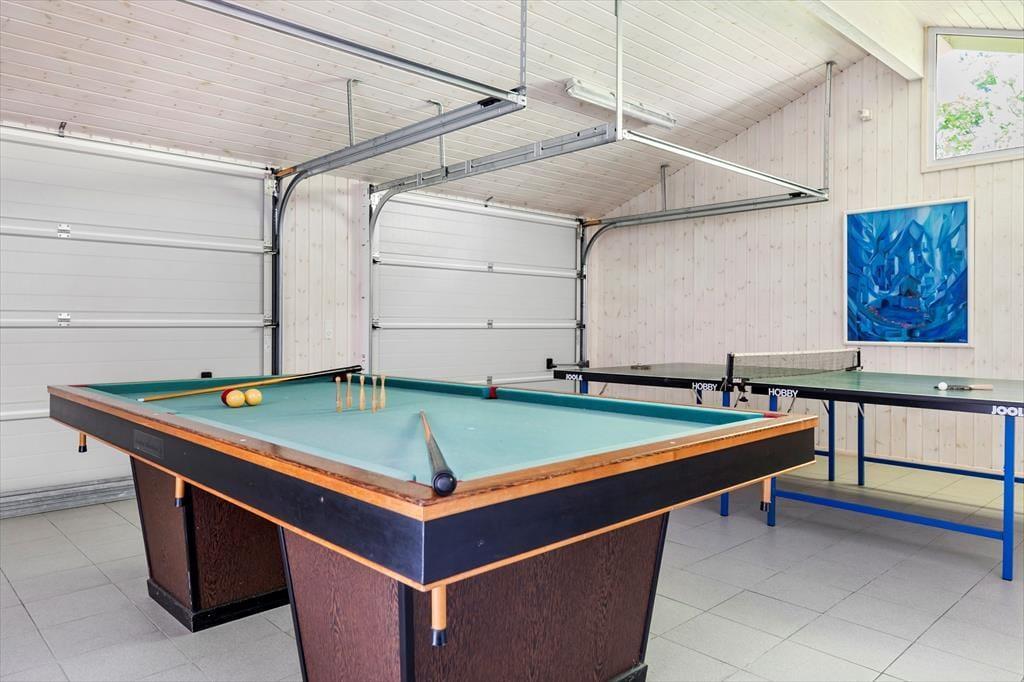 Sommerhuset byder på en lys og venlig atmosfære, hvor feriestemningen straks indfinder sig. Aktivitetsrummet er husets hjerte og sikrer mange timer med sjov og samvær – her kan både børn og voksne dyste i bordtennis eller pool. Stuen er hyggeligt indrettet med bløde møbler og en varmende brændeovn, der inviterer til afslappende aftener med brætspil og hygge. Det åbne køkken-alrum gør madlavningen til en social oplevelse, hvor hele familien kan være med, mens du tryller lækkerier frem. Soveværelserne er indrettet med fokus på komfort, så alle kan vågne op veludhvilede og klar til endnu en skøn dag.