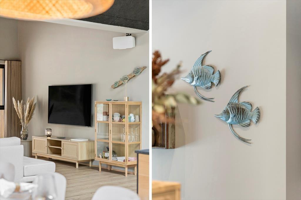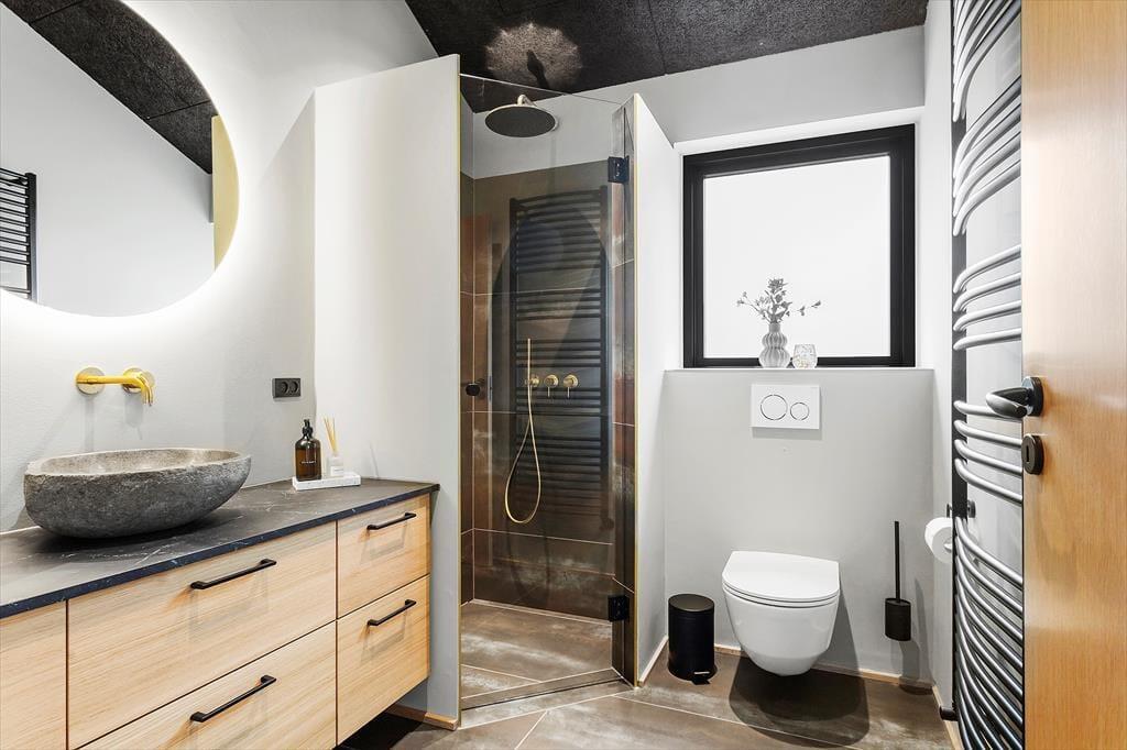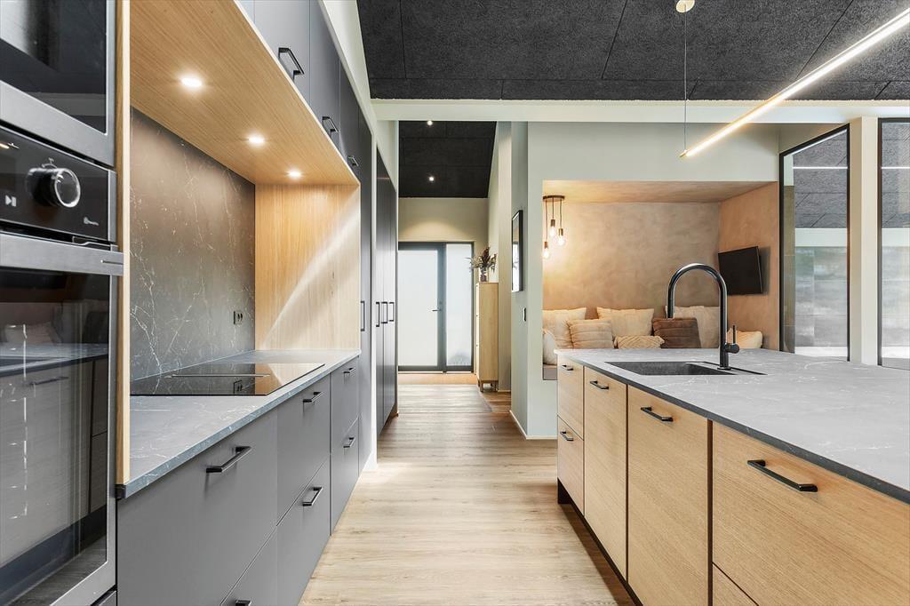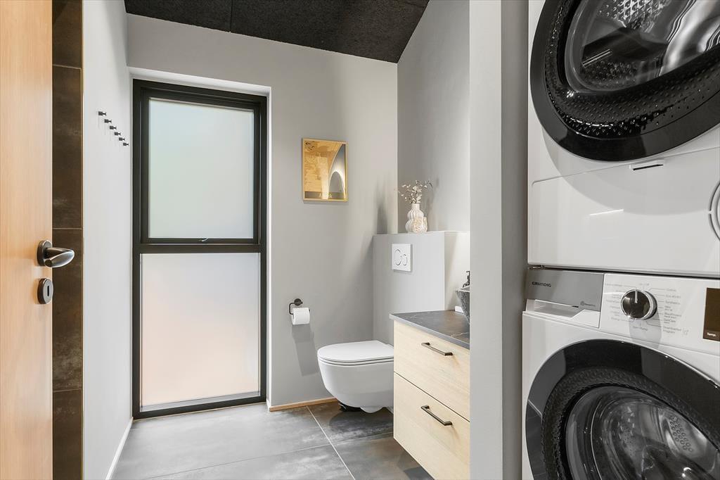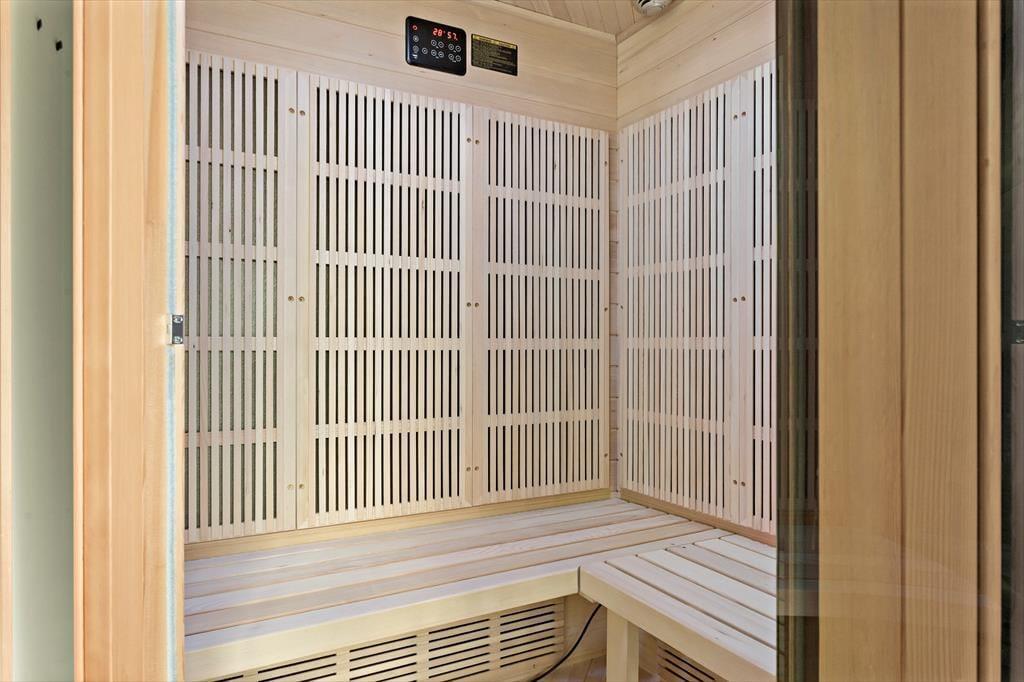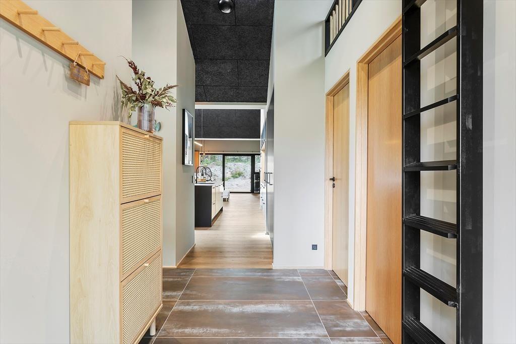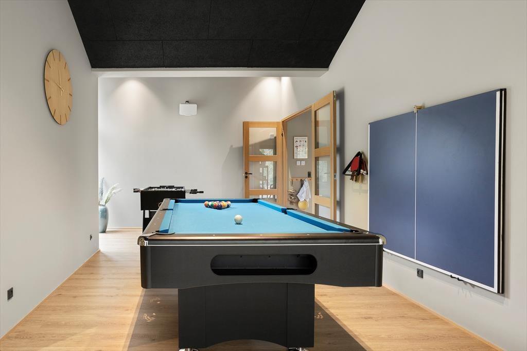 Sommerhuset ligger i bunden af en lukket vej på en stor naturgrund, der omkranses af store træer, så uanset hvad feriedagene byder på, kan du nyde livet i ro og mag. Gennem husets store vinduer bliver naturen inviteret helt indenfor, og rummene har loft til kip og en lys indretning i elegante farvetoner, der er med til at skabe en fornemmelse af hygge og velvære. De mange lækre detaljer og udsøgte faciliteter sørger for, at alle kan have det godt – uanset om I sover sødt på de fem værelser og to hemse, spiller pool og bordtennis i aktivitetsrummet eller hygger jer med en god middag og musik på SONOS-anlægget i det store opholdsrum. Selv i stuens alkove er der tv, hvis du vil slappe af med en spændende film, og når det er tid til at koble helt af, er det herligt at have fri råderet over en stor wellnessafdeling med både saltvandspool, sauna og spabad.