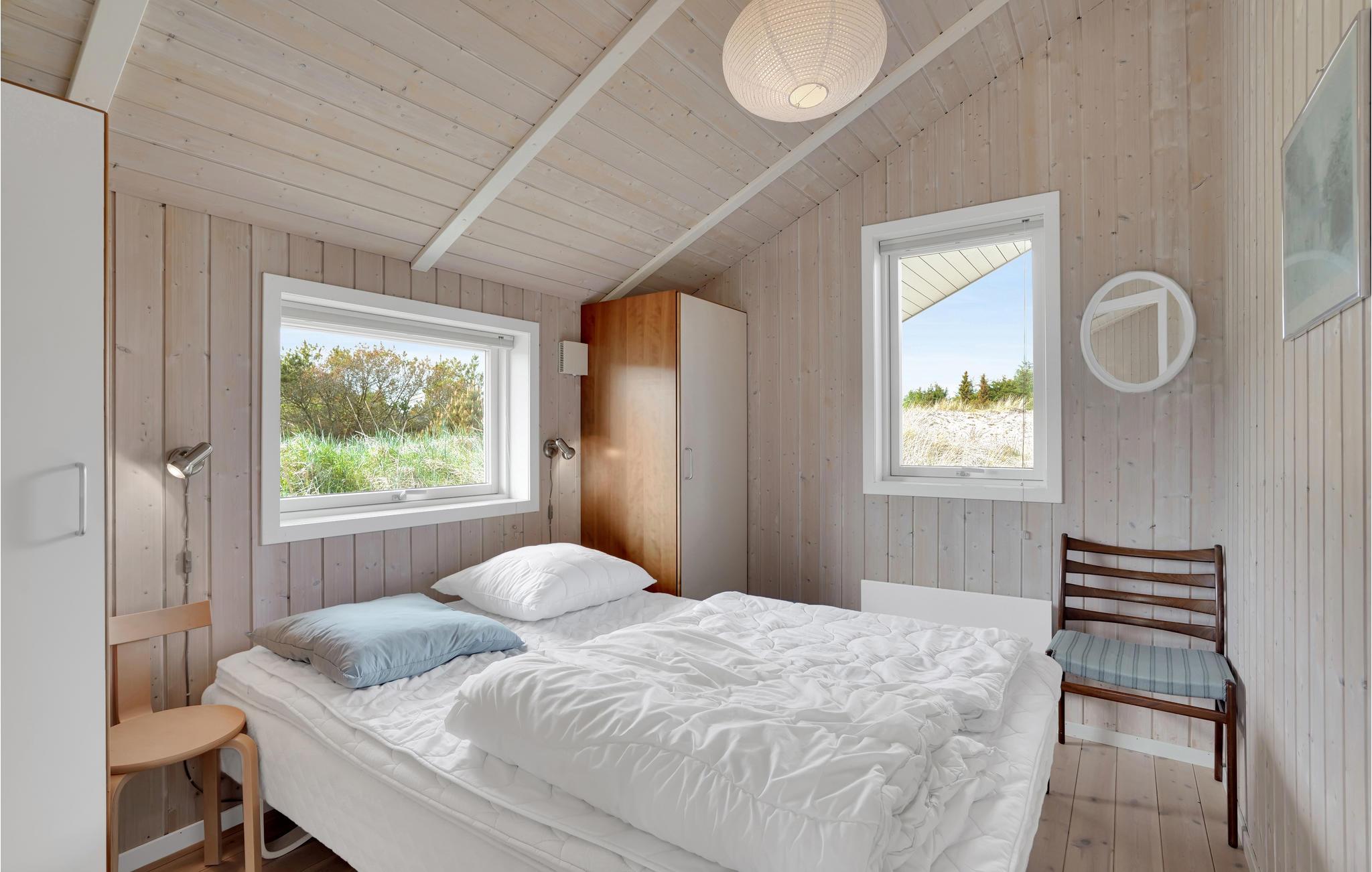 Bag den yderste klitrække og med direkte adgang til strandområdet ligger dette skønne feriehus. Huset er indrettet med flotte møbler, har skønne soverum og fra stuen er der udgang til østvendt terrasse hvor morgensolen kan nydes, ligeledes er der syd og vestvendte terrasser, så udelivet kan dyrkes hele dagen. Fra ferieboligen er der ikke langt til dejlige Skagen, Råbjerg Mile, Ørnereservatet og flere fine golfbaner. Stranden ved Bunken er af høj kvalitet og bilfri.