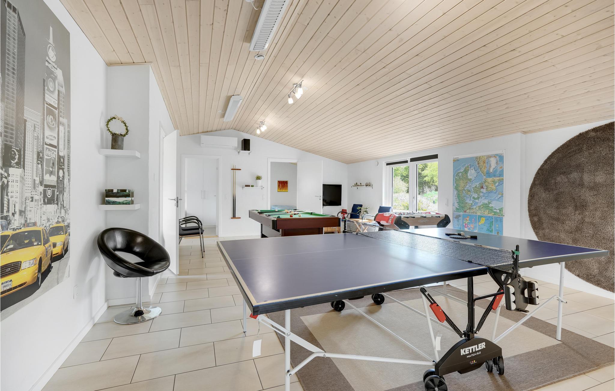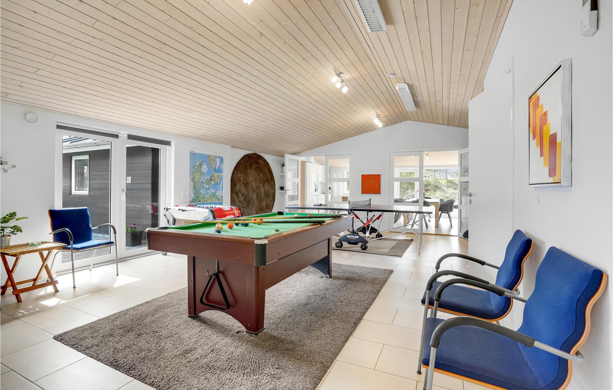 Huset er opført i gode materialer og er praktisk indrettet med flot udstyr og gode møbler. Husets store aktivitetsrum har både bordfodbold, bordtennis og poolbord, så her er mange timers underholdning for både børn og voksne. Det store badeværelse har foruden et velgørende spabad og sauna også en dampkabine.