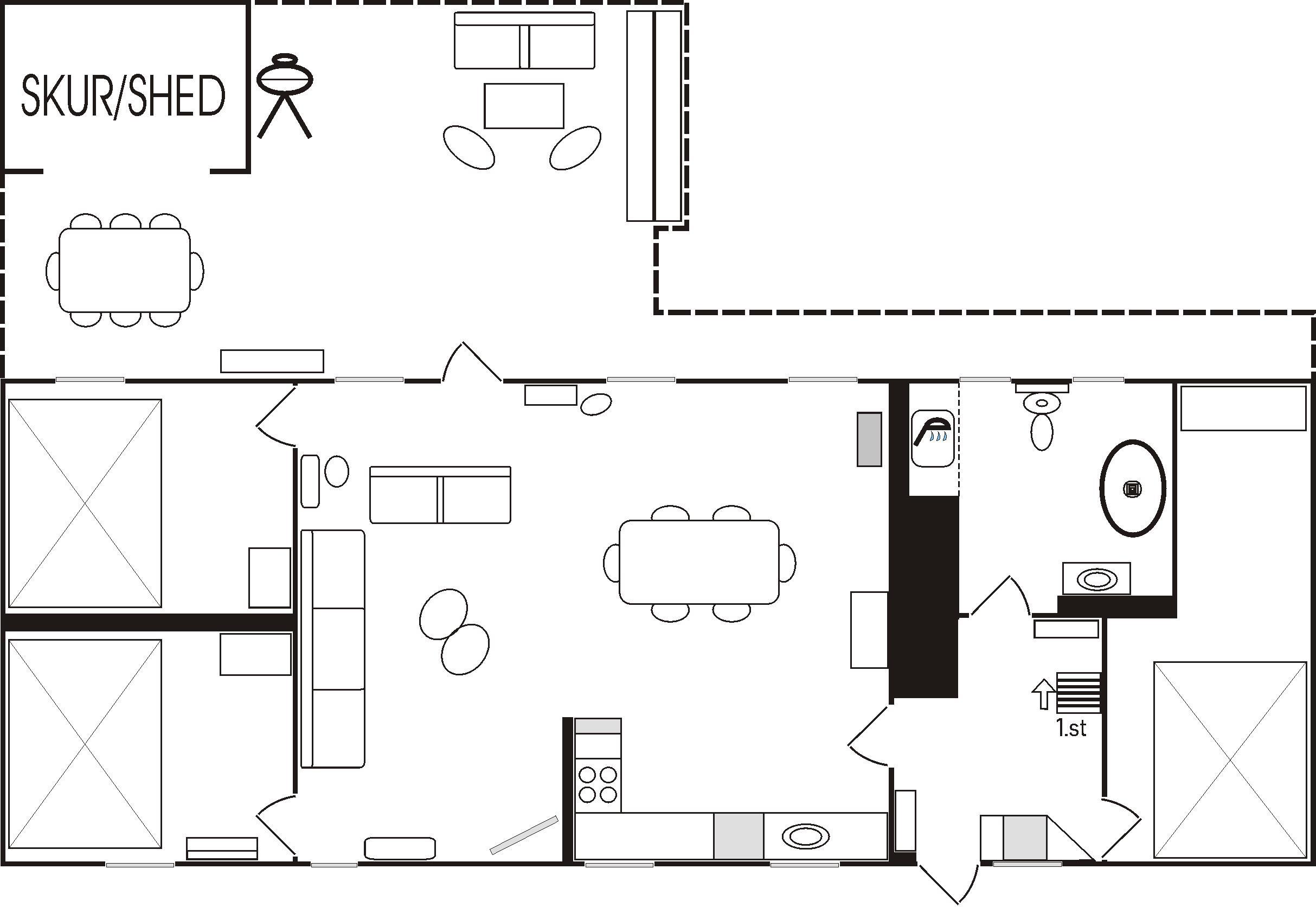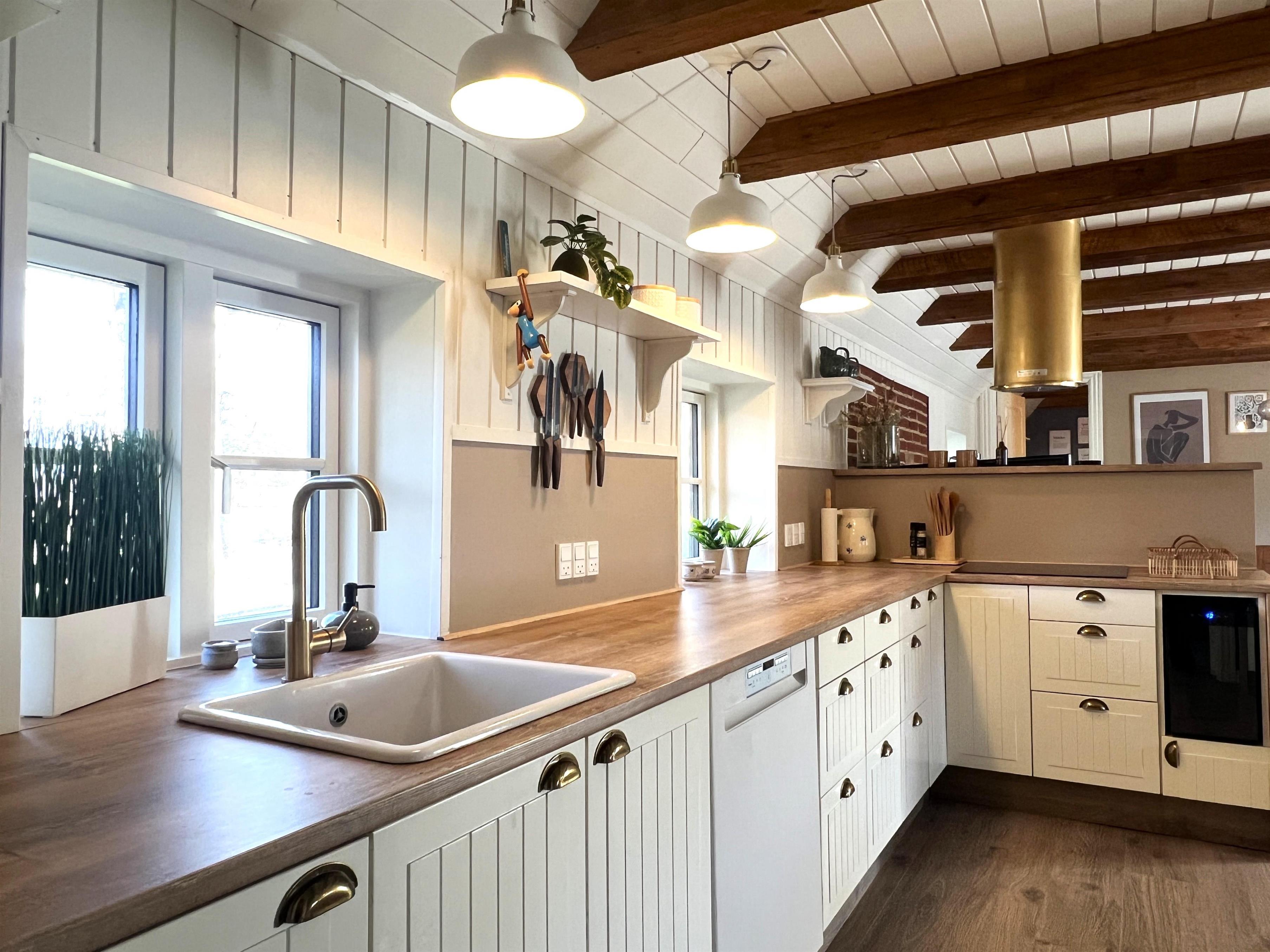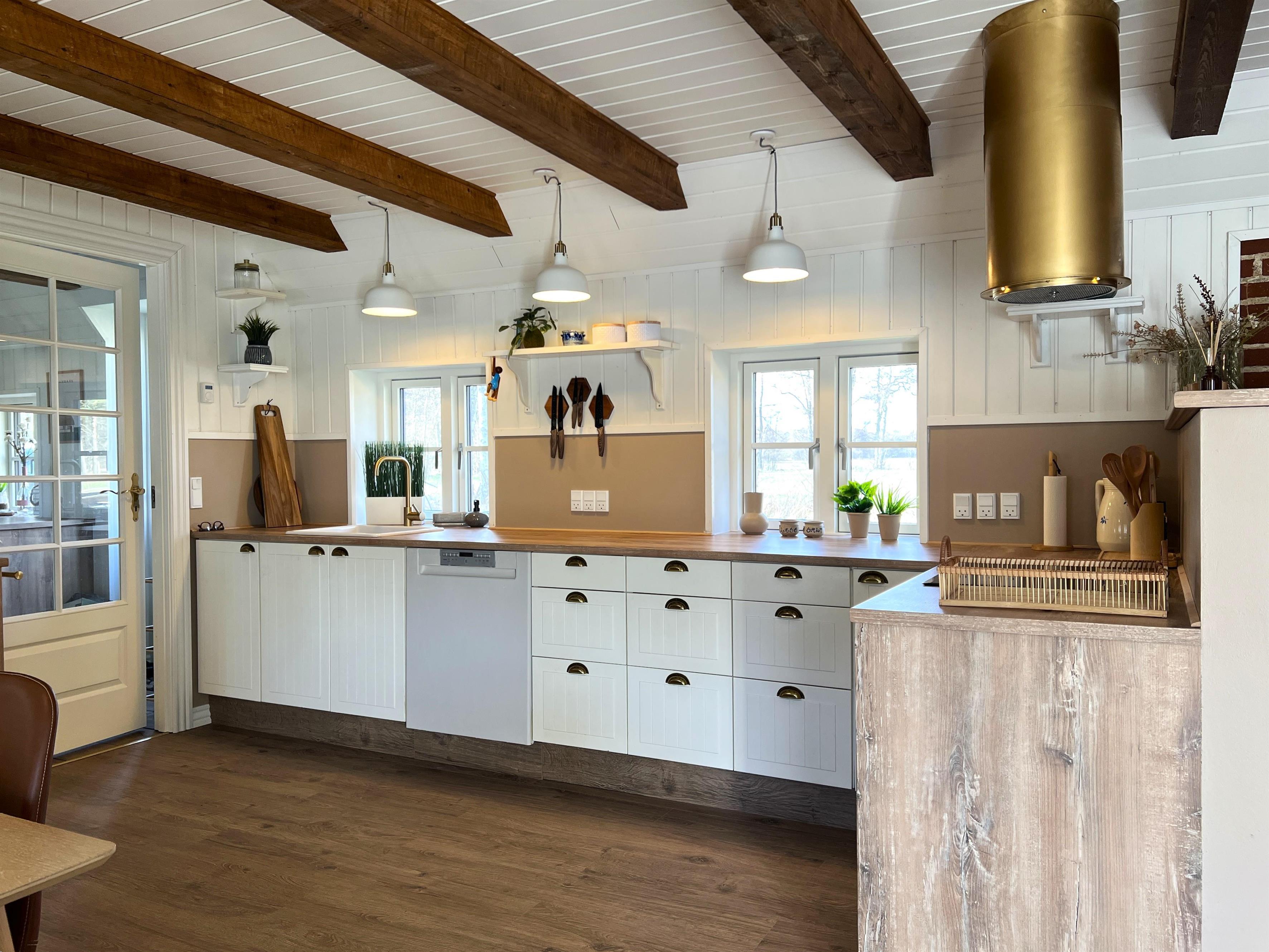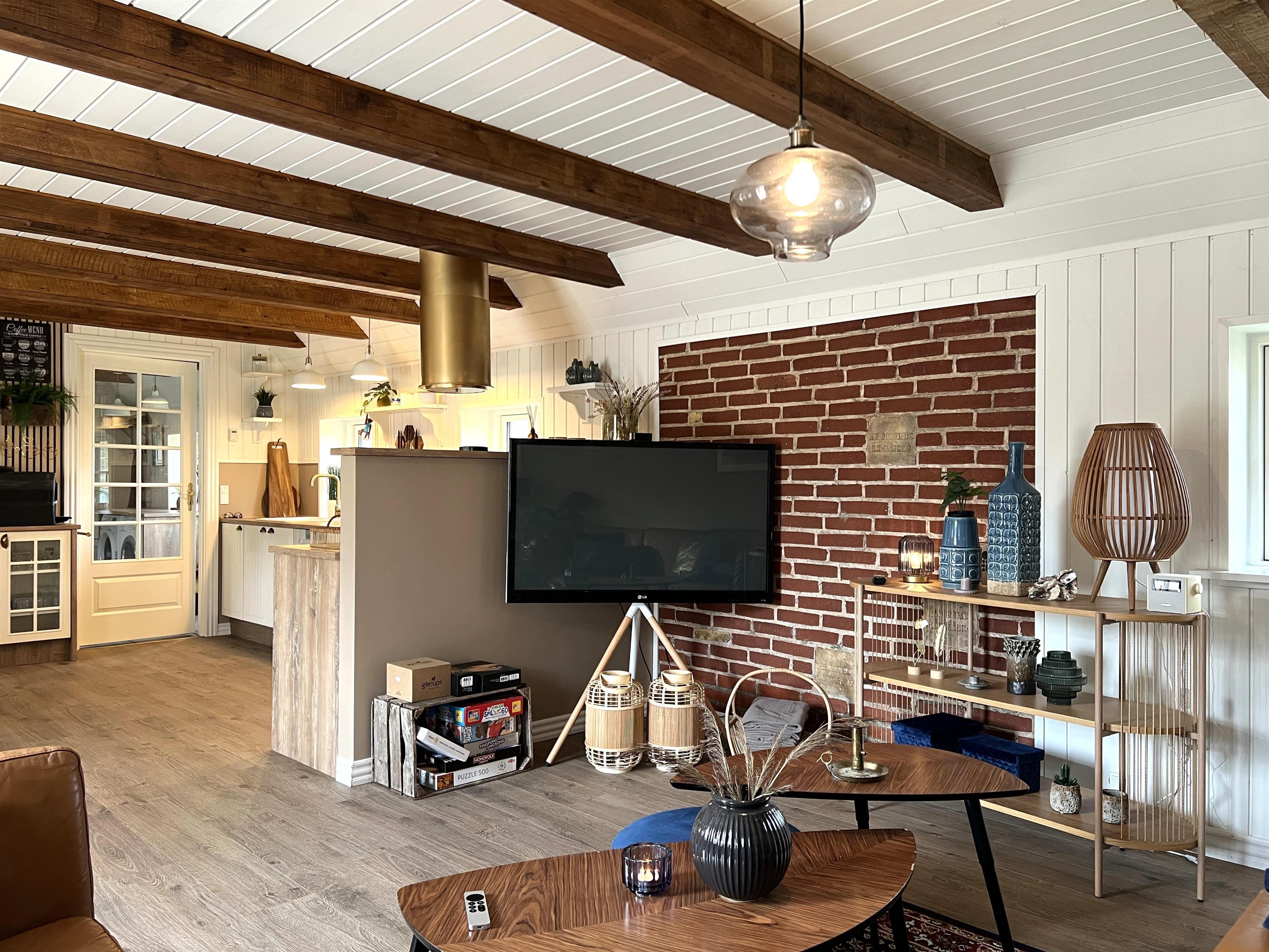 Huset er helt igennem nyrenoveret, og fremstår særdeles indbydende med fritliggende loftbjælker og mange skønne detaljer. Huset indeholder et dejligt køkken-alrum med et flot, veludstyret køkken og sofa/TV-afdeling. Stueetagen byder på tre fine soveværelser med dobbeltsenge, samt lækkert badeværelse med brus og fritstående badekar. Entre med vaskemaskine og tørretumbler. På 1. salen er der en stor dobbeltseng, samt hyggehjørne med mulighed for læsning eller spil.