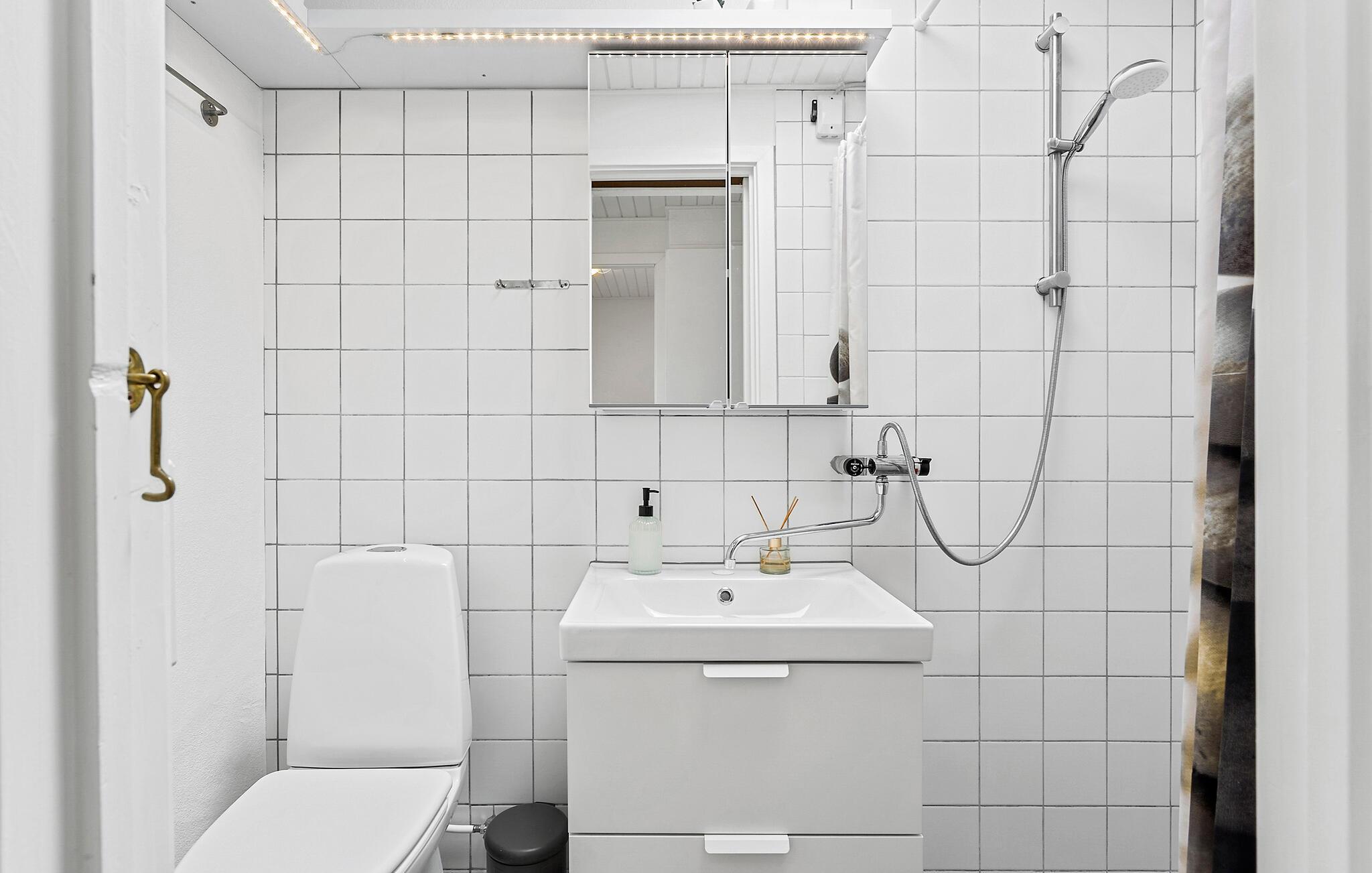 Badeværelse (nr. 1) - WC. Varmt og koldt vand. Bruser