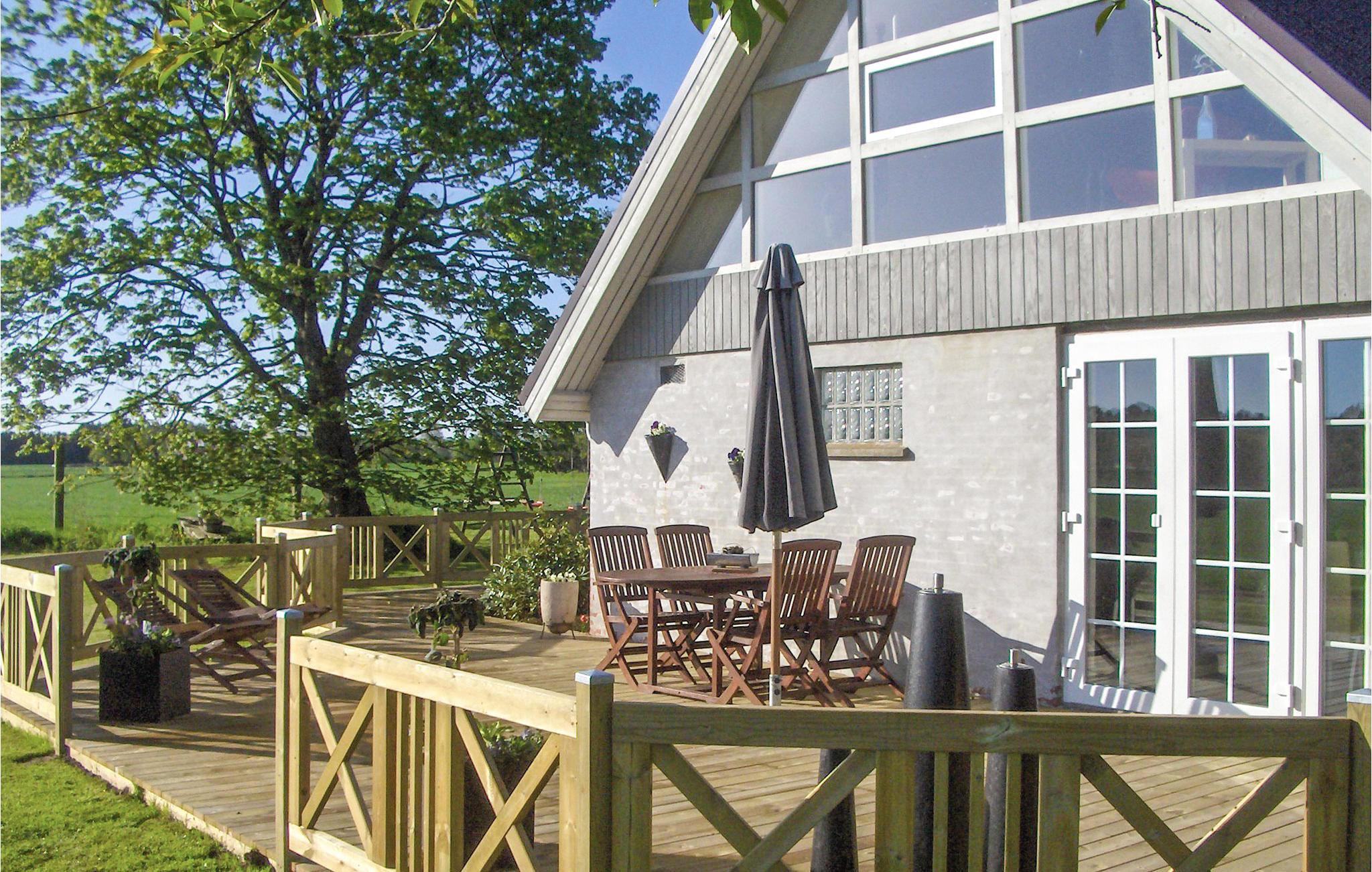 Stilfuldt fritidshus i Dagsvad med privat pool, stor terrasse og udsigt over det smukke landskab.