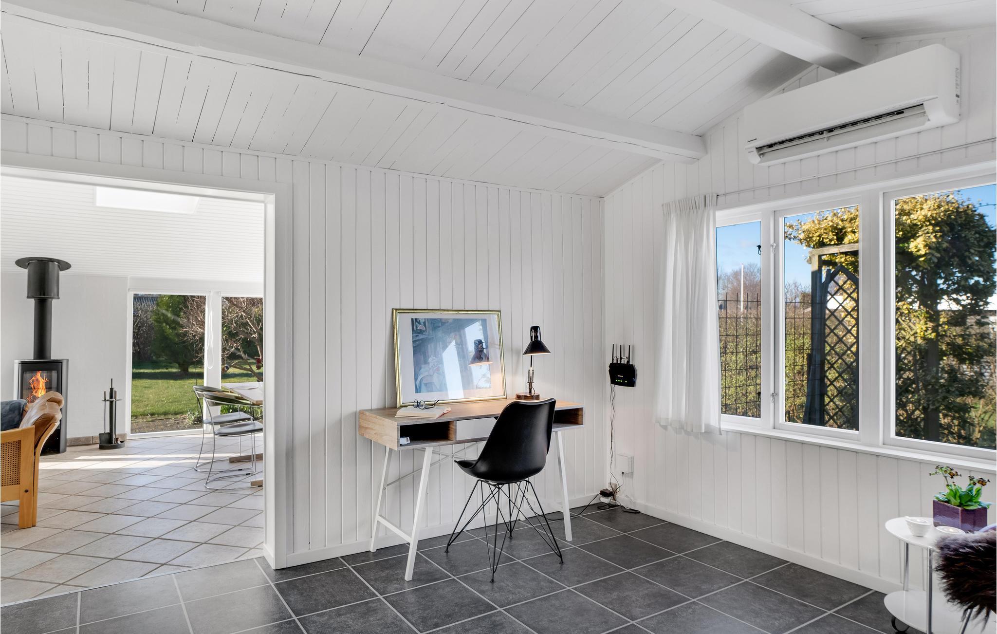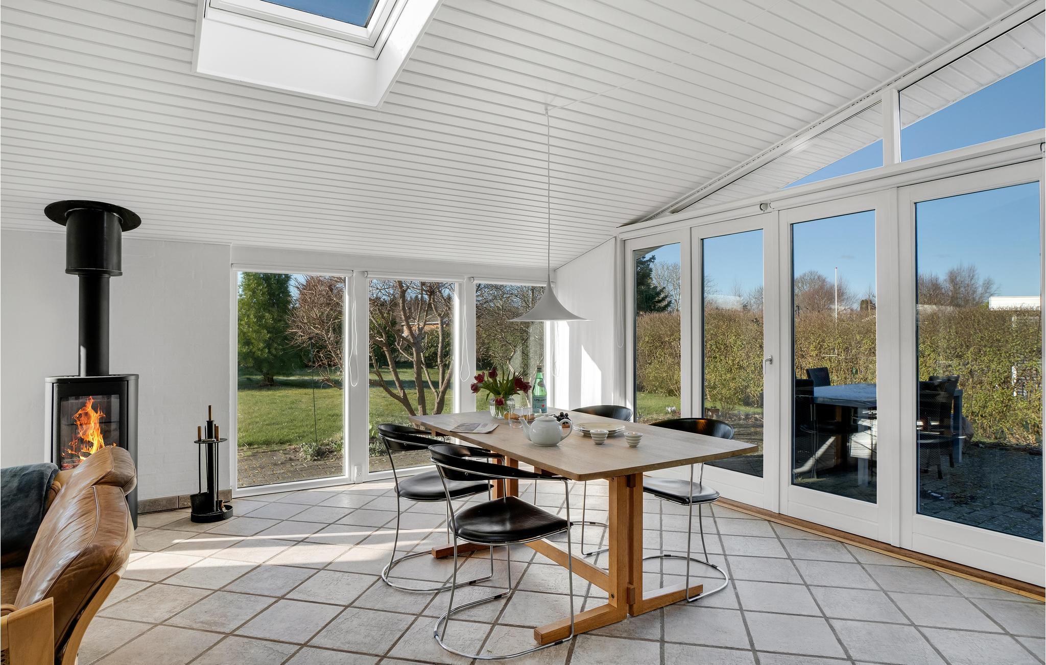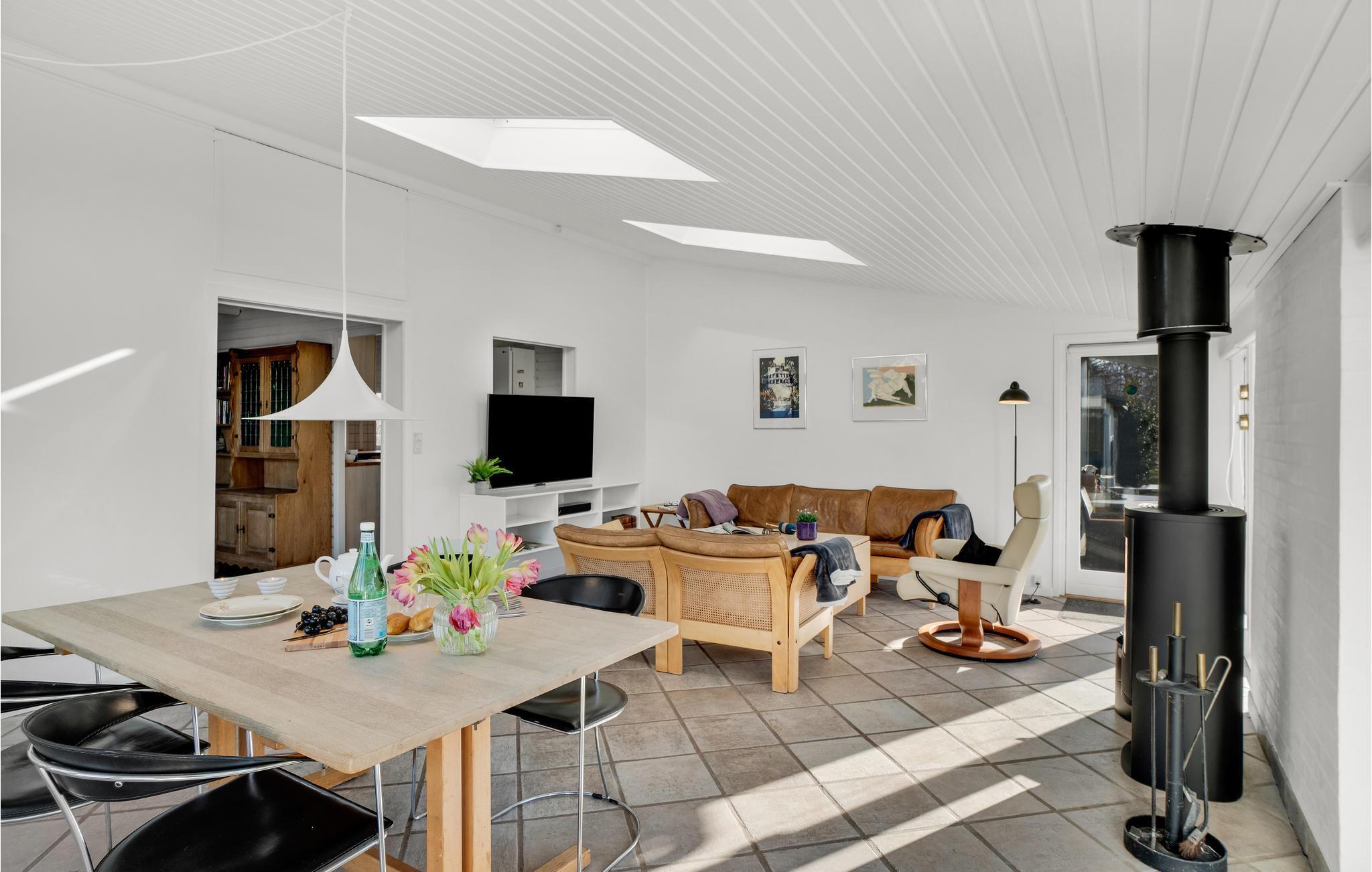 Der er gode rammer til hele familien i husets attraktive rum, som har et stilrent og komfortabelt udtryk med store lysindfald. Nyd dagens måltider foran de store gulv til loft-vinduer, der næsten giver jer følelsen af at sidde i haven. Efter en lang dag med aktiviteter i området kan I læne jer tilbage i sofaen, mens ilden knitrer stemningsfuldt i brændeovnen.