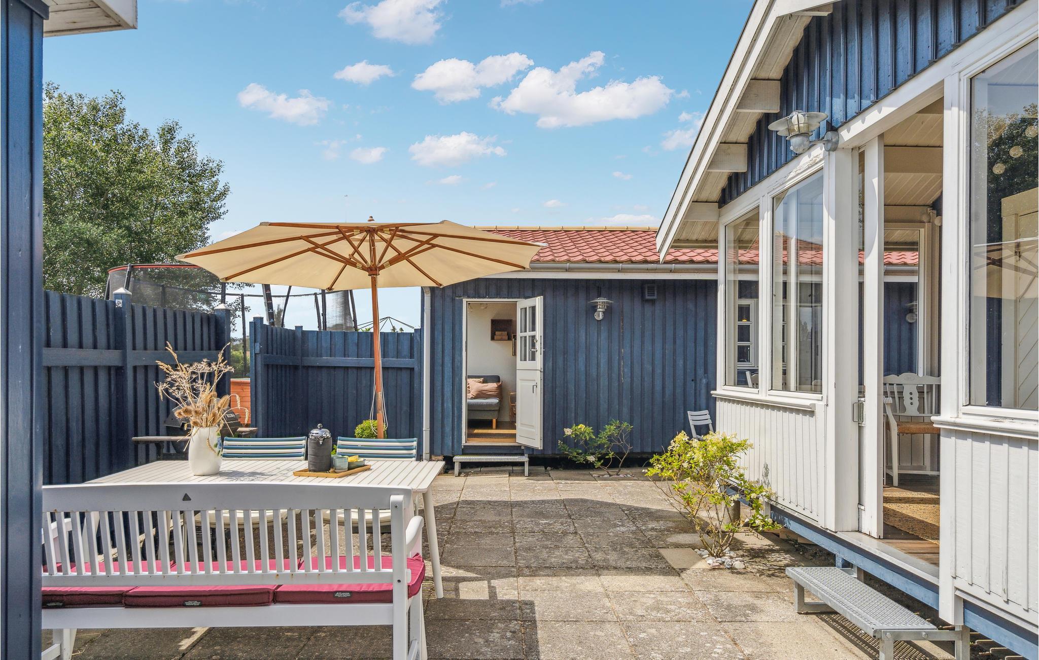 Hyggeligt feriehus nær Dalbybugtens sandstrand med brændeovn og stor have til familietid.