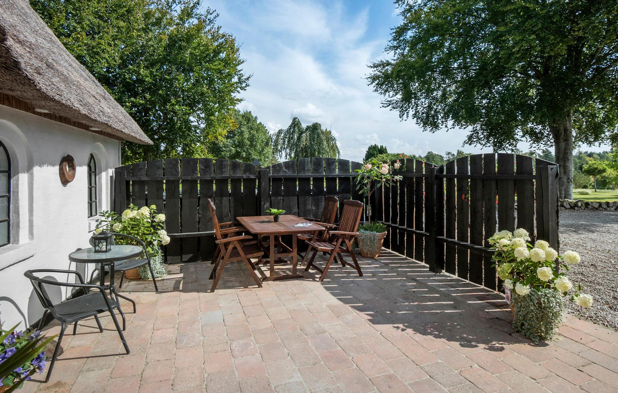 Træd ud i den overdækkede gårdhave og nyd solrige timer udendørs. Tag plads i siddegruppen og afslut dagen med en kop kaffe eller et glas vin. Gå en tur gennem den velholdte have eller gå hen til den fine fiskesø, hvor I kan sætte jer med fiskestængerne og se, om noget bider på. Hvis I er heldige at få en fangst, kan den tilberedes i rygeovnen.