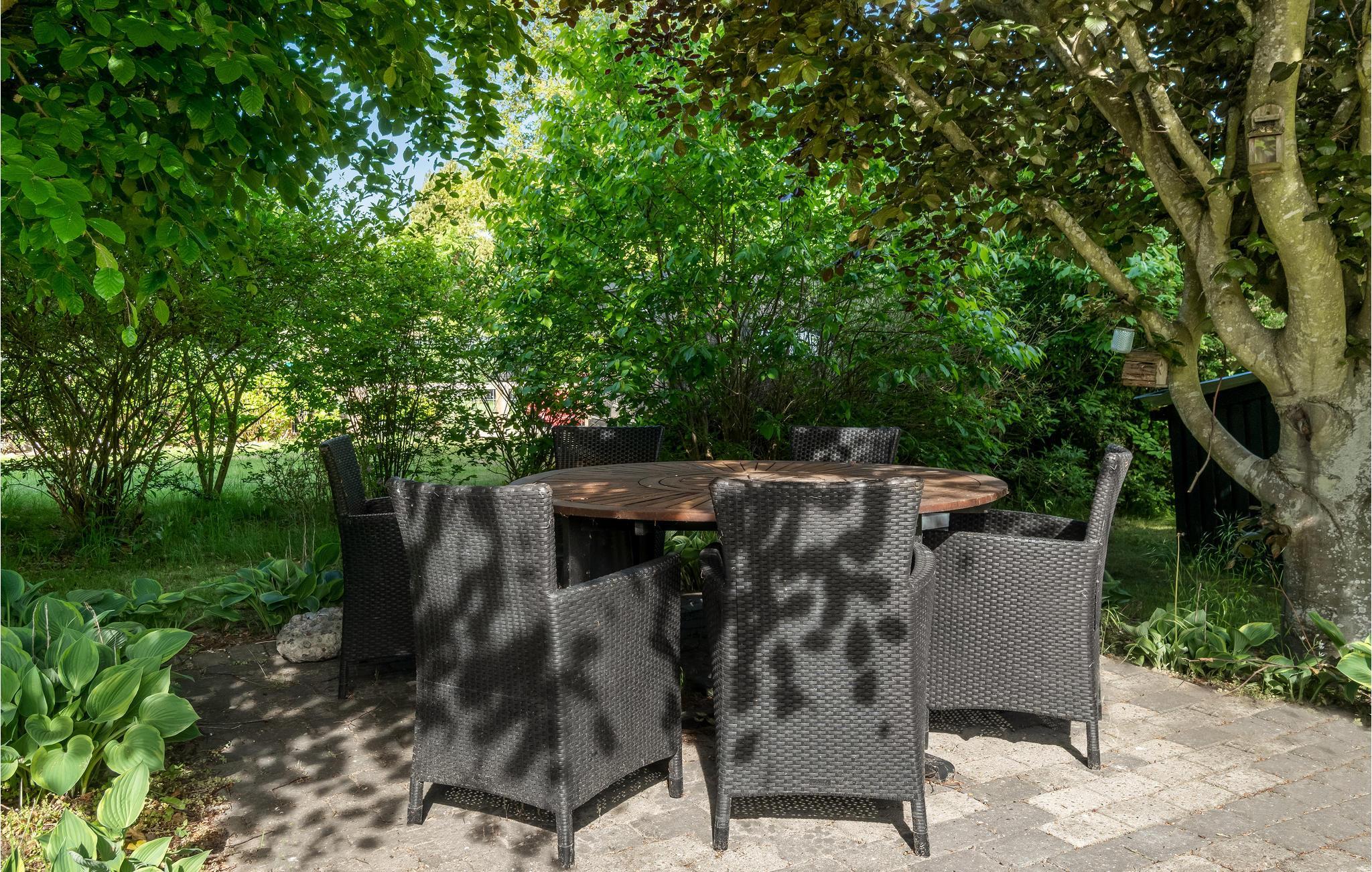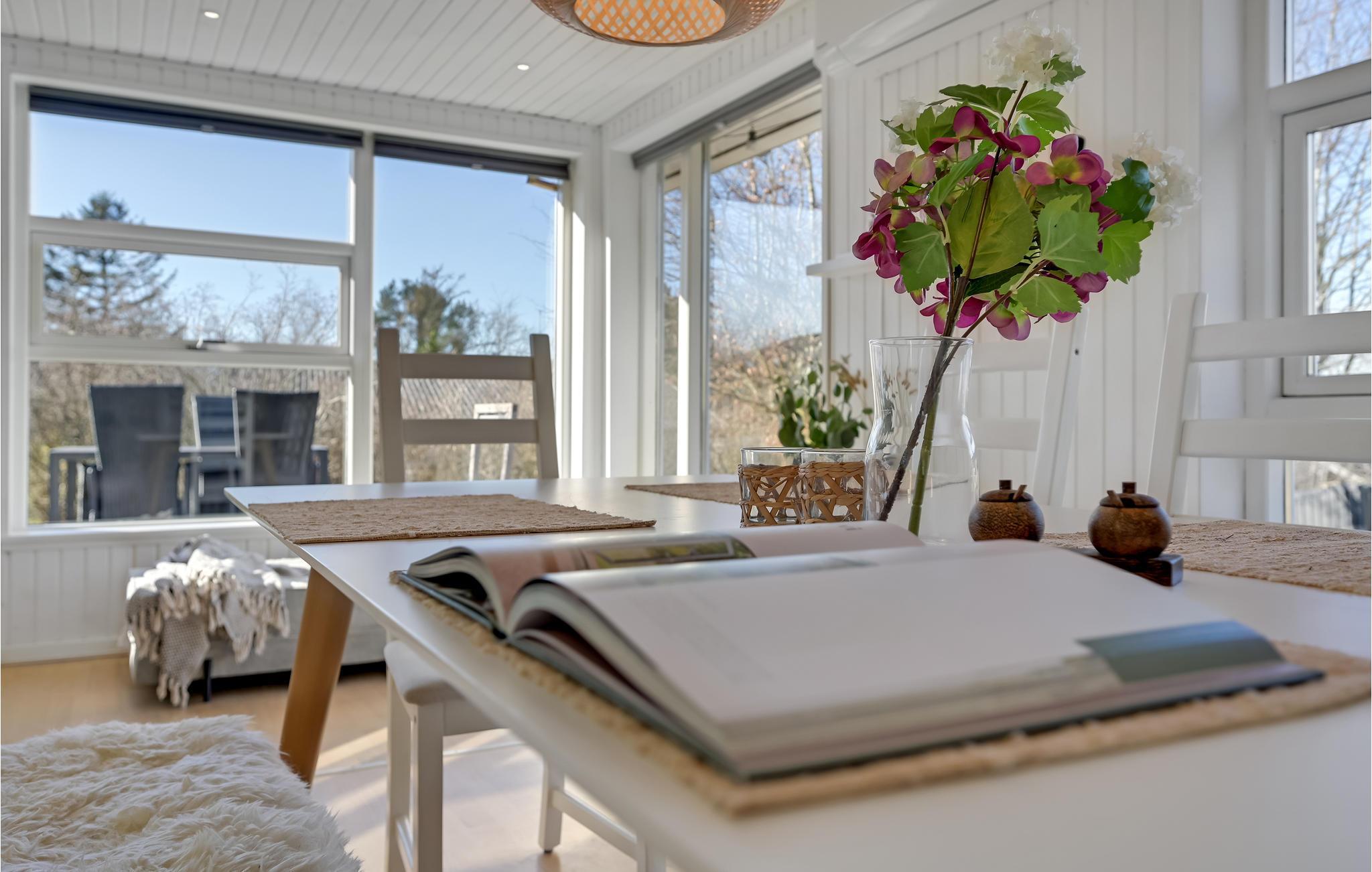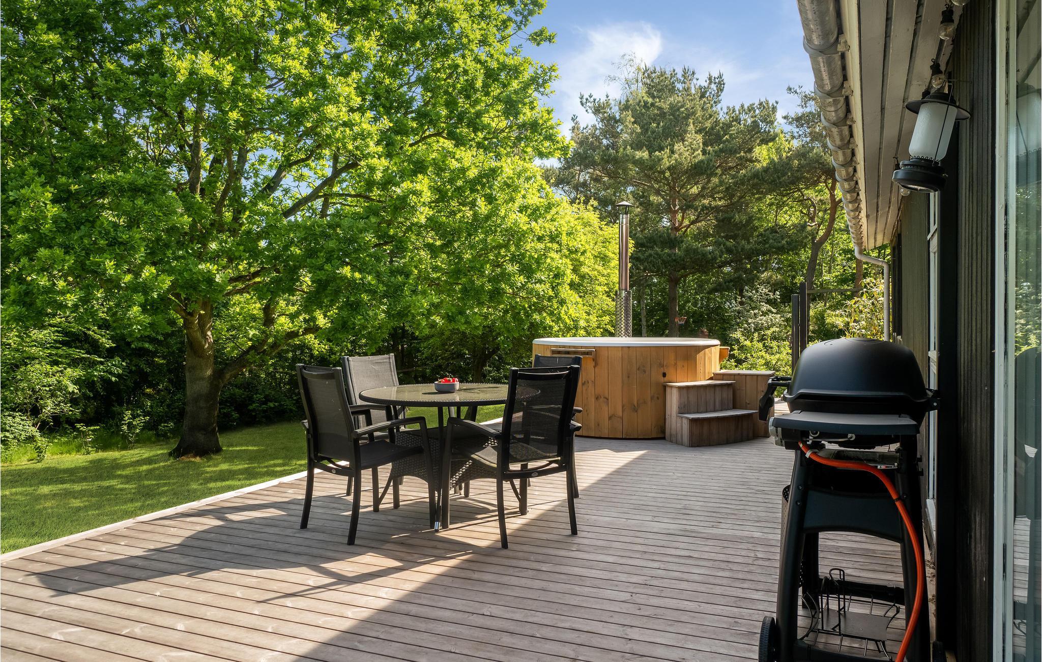 Dette skønne sommerhus er en sand oase for en familie. Her kan I tilbringe nogle fredfyldte dage og nyde faciliteterne og de dejlige rammer. Efter en lang dag på farten kan I hygge jer med madlavning, brætspil og gode bøger i det lyse opholdsrum, mens ilden knitrer i brændeovnen. I kommer sikkert også til at bruge en god del af tiden på den store træterrasse i sommerhalvåret. Læn jer tilbage i vildmarksbadet og fyld dagene med hyggelige grillaftener, hvor børnene kan lege i haven før og efter spisetid.