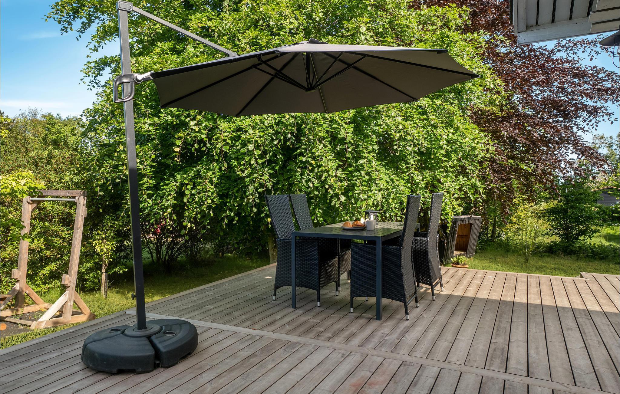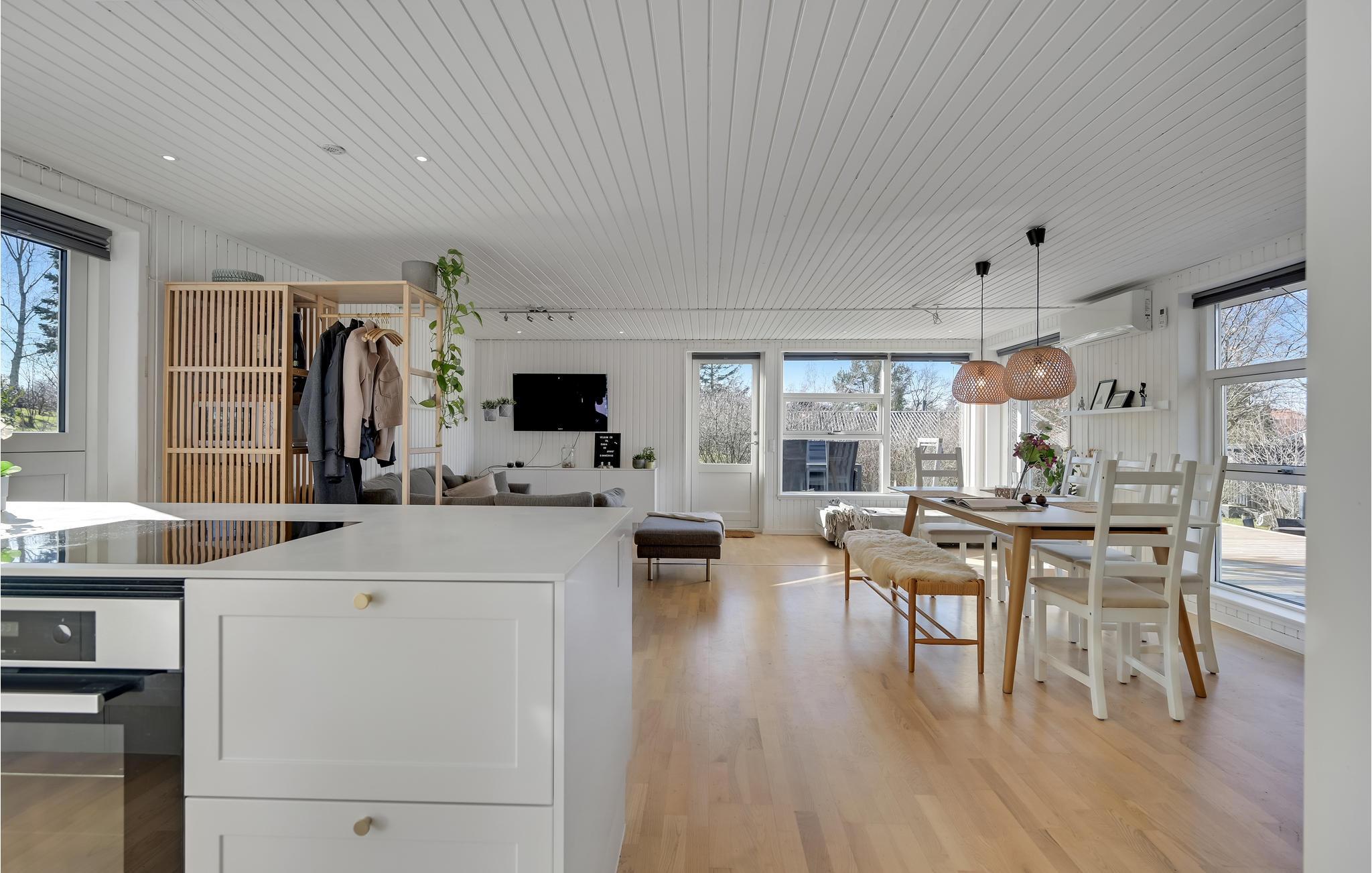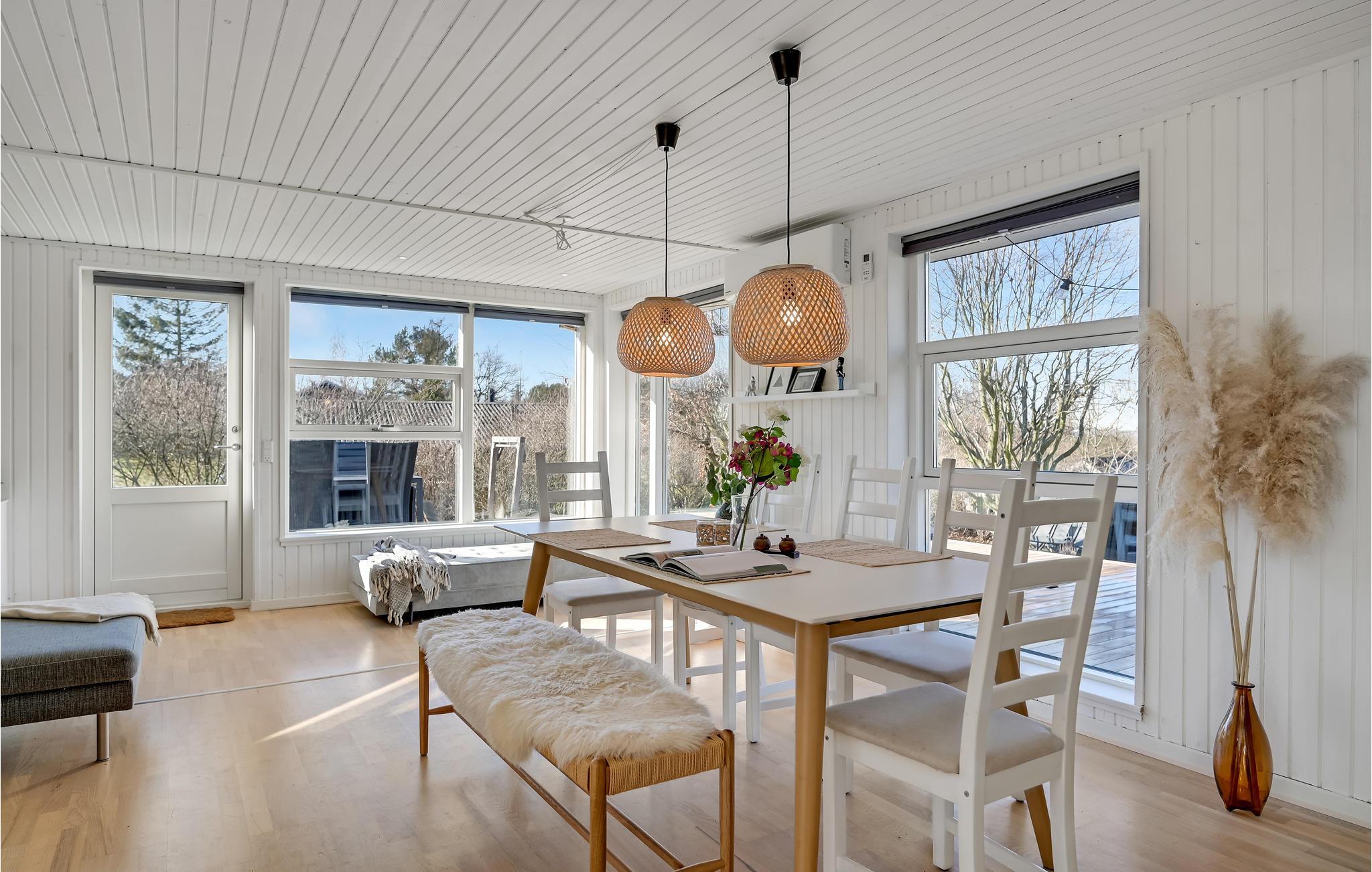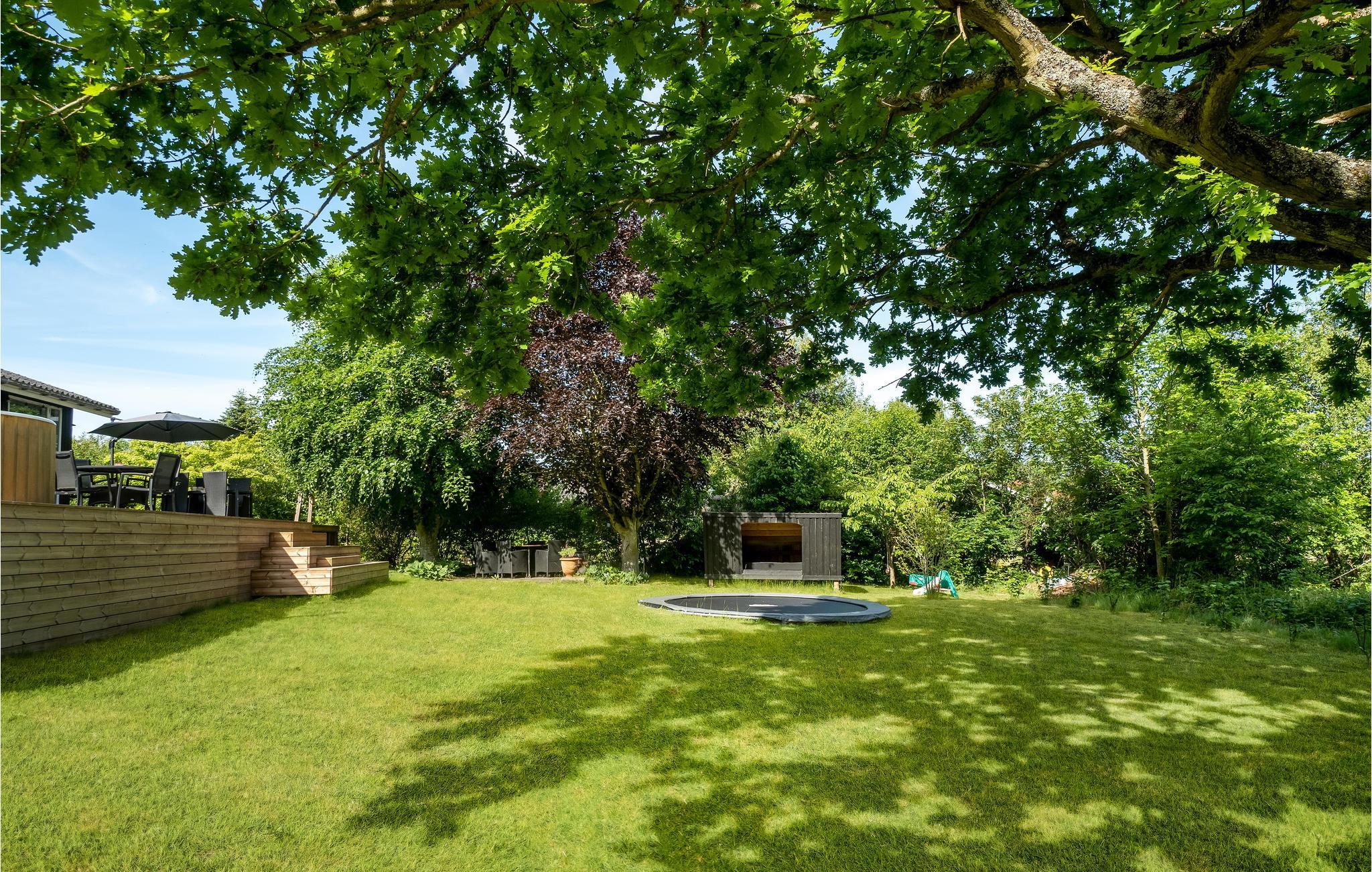 Dette skønne sommerhus er en sand oase for en familie. Her kan I tilbringe nogle fredfyldte dage og nyde faciliteterne og de dejlige rammer. Efter en lang dag på farten kan I hygge jer med madlavning, brætspil og gode bøger i det lyse opholdsrum, mens ilden knitrer i brændeovnen. I kommer sikkert også til at bruge en god del af tiden på den store træterrasse i sommerhalvåret. Læn jer tilbage i vildmarksbadet og fyld dagene med hyggelige grillaftener, hvor børnene kan lege i haven før og efter spisetid.