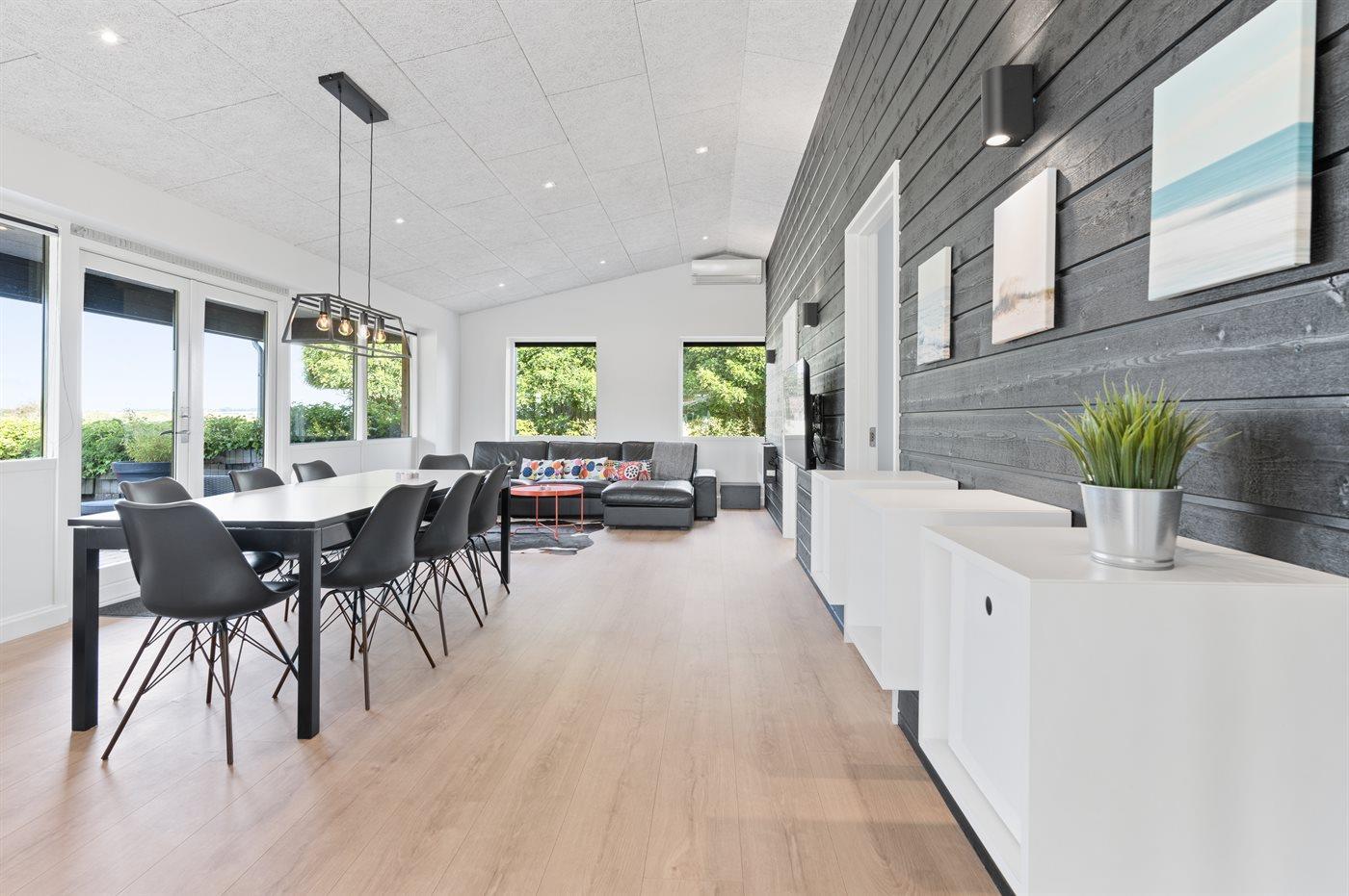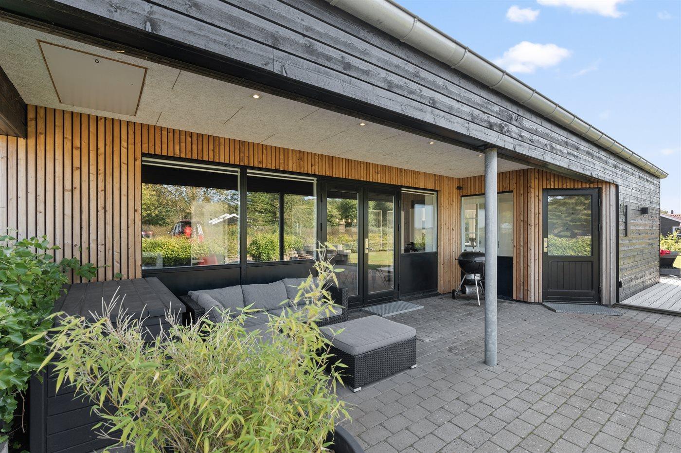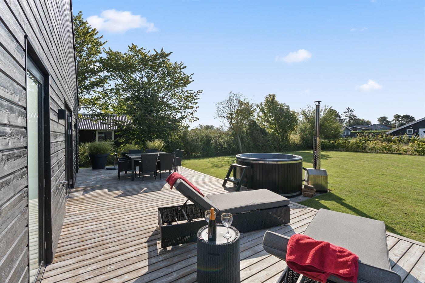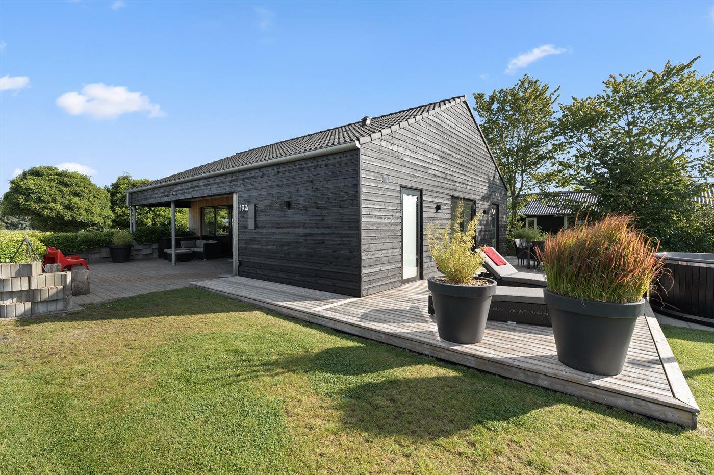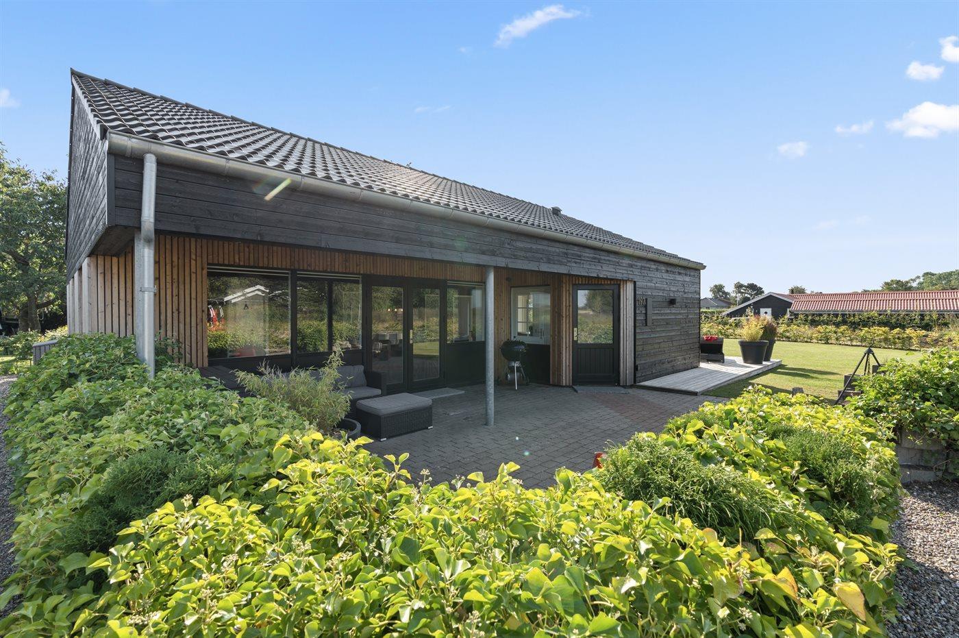 Totalrenoveret sommerhus nær Diernæs strand med vildmarkskar og store terrasser.