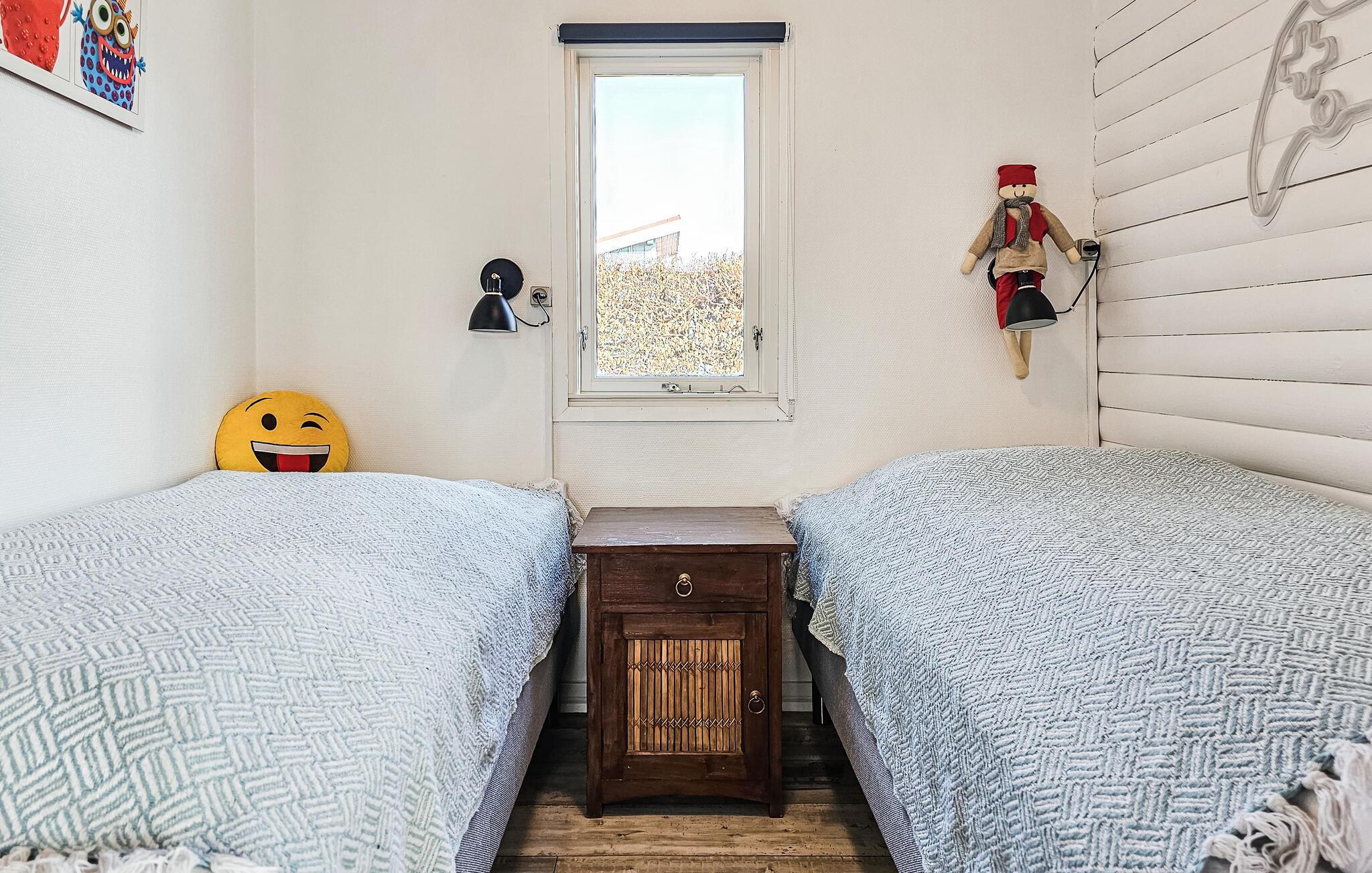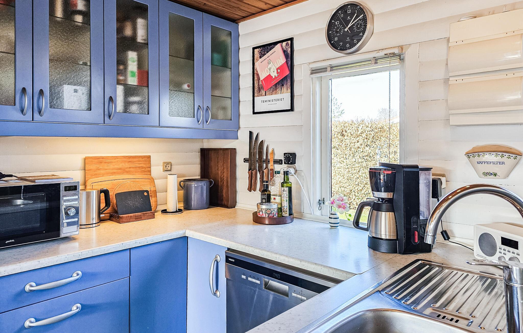 Kom ind og lad jer fortrylle af komforten i dette lyse og velindrettede feriehus. Her skaber store vinduer med udsigt over haven og velholdte træpaneler på væggene en virkelig hyggelig atmosfære. Glæd jer til hyggelige middage, hyggelige spilleaftener og afslappende læsetimer, mens brændeovnen knitrer stille eller stream en film, som hele familien kan være fælles om at se.