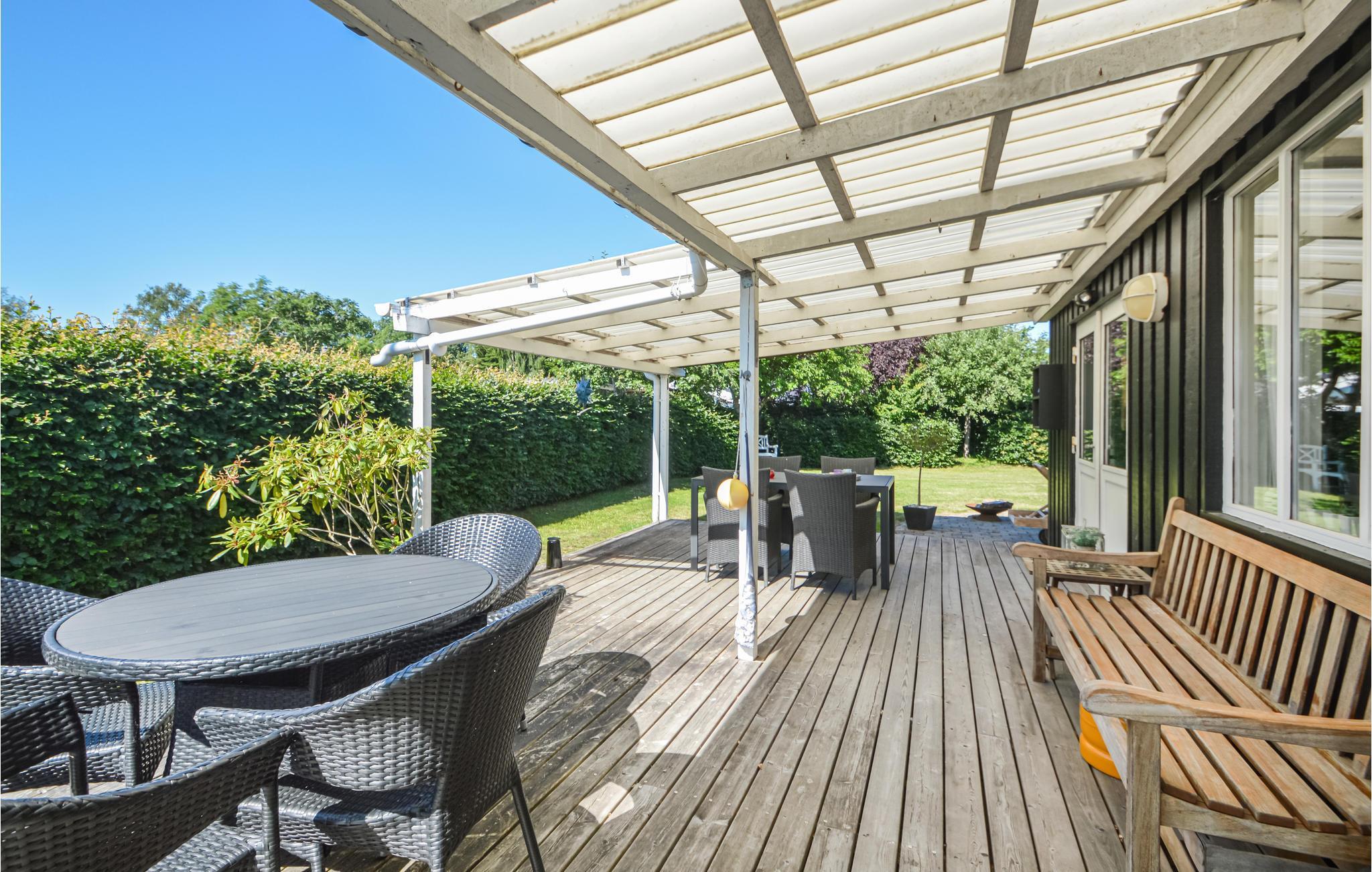 På terrassen kan I vælge mellem sol og skygge, når I skal dække op til dagens måltider udendørs. Det rummelige græsplæneområde vil naturligt lokke børnene til at få lidt frisk luft. På varme sommeraftener kan I samles om en hyggelig grillmiddag.
