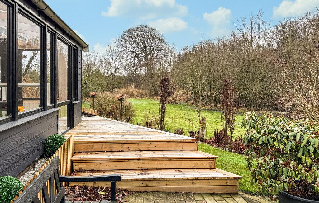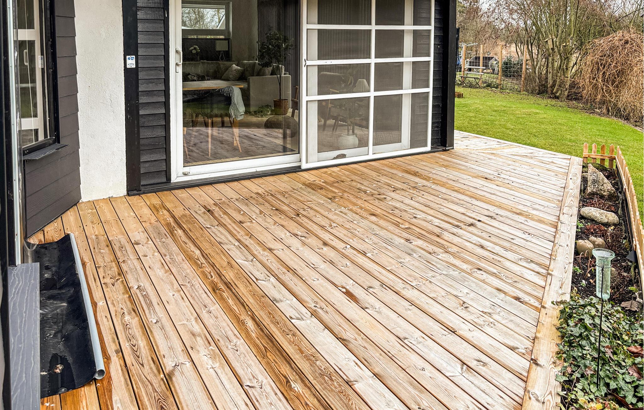 Træd ud på den rummelige træterrasse og slå jer ned i havemøblerne. Lad blikket vandre over det dejlige udendørsområde og nyd den friske luft. Begynd dagene her med morgenmad eller tilbring hyggelige stunder i solen.