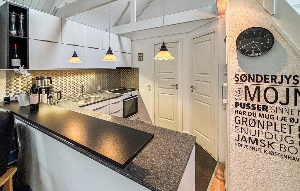 Indenfor kan I nyde en behagelig rumfornemmelse med store vinduer, der lukker masser af lys ind. Find jer godt til rette i den hyggelige hjørnesofa og lad blikket vandre gennem de store vinduer ud i haven. Dæk op til dagens måltider sammen ved det lange spisebord og læg planer for den næste skønne udflugt. I kan nemt tilberede jeres feriemåltider i det åbne køkken. For ekstra underholdning kan I spille et spil bordfodbold eller udfordre hinanden til en runde dart.