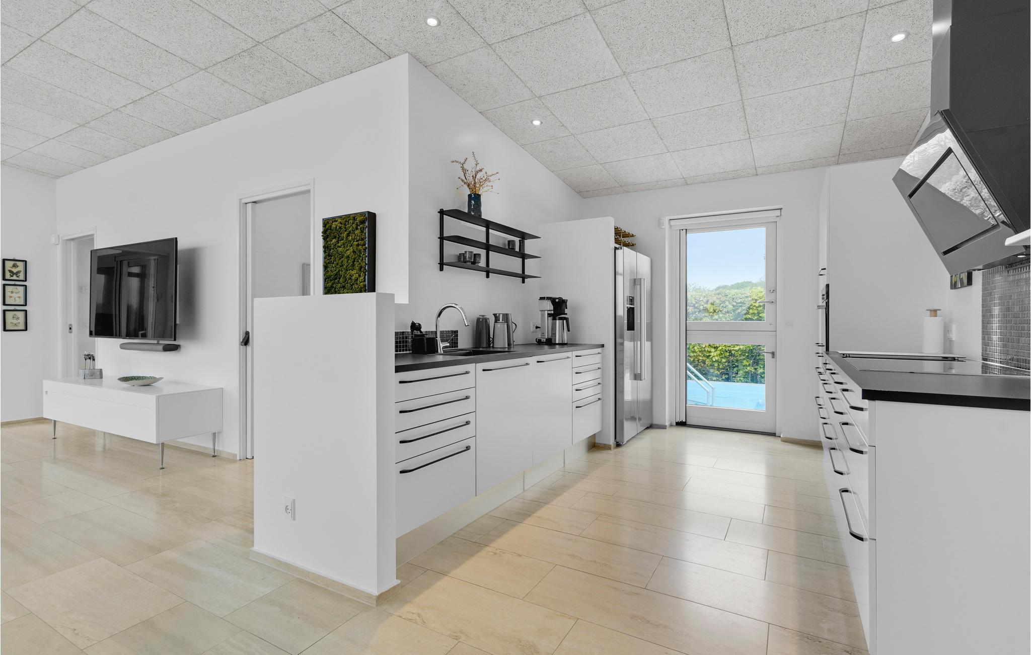 Ved den skønne Diernæs Strand ligger dette dejlige sommerhus med panoramudsigt ud over Lillebælt, og adgang til den fredelige sandstrand. Huset er indrettet til gangbesværede, og har været brugt af kørestolsbruger. Den udendørs swimmingpool er åben fra medio maj til ultimo september, og er opvarmet med varmepumpe (afhængig af vejret og udetemperaturer). Huset har terrasser hele vejen rundt om huset, heraf en overdækket med udsigt ud over vandet. Indendørs emmer sommerhuset af kvalitet, og har mange finesser som elektriske gardiner, amerikansk køleskab og alle faciliteter, der er med til at give en god ferie. Nyd den fantastiske udsigt ud over vandet, eller slap af med sol og badning i poolen bag huset.