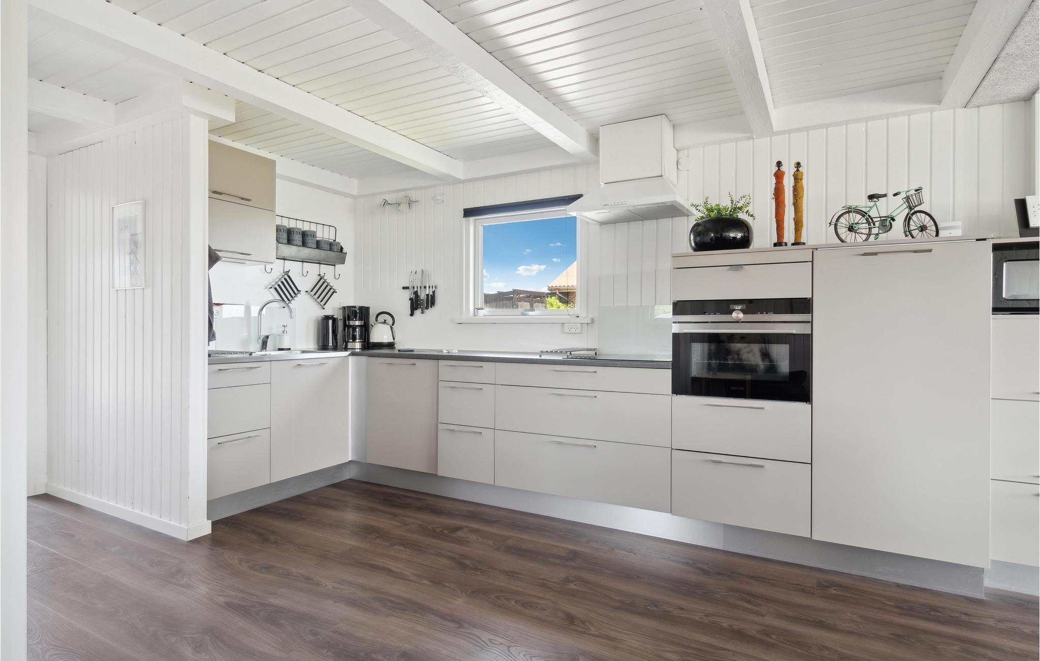Glæd jer til et elegant og stilfuldt indrettet sommerhus ved Doverodde Strand i Nordjylland, med masser af plads at slappe af på. I kan tilberede lækre feriemåltider i husets veludstyrede køkken og efterfølgende nyde dem ved spisepladsen eller ude på terrassen. Her kan I sole jer og beundre fjorden i løbet af dagen, mens børnene løber rundt og leger i haven. Jeres hund er også velkommen her, så hele familien kan holde ferie sammen. Om aftenen kan I grille og afslutte dagen foran husets fladskærm med Chromecast, der gør, at I kan streame film og serier.
