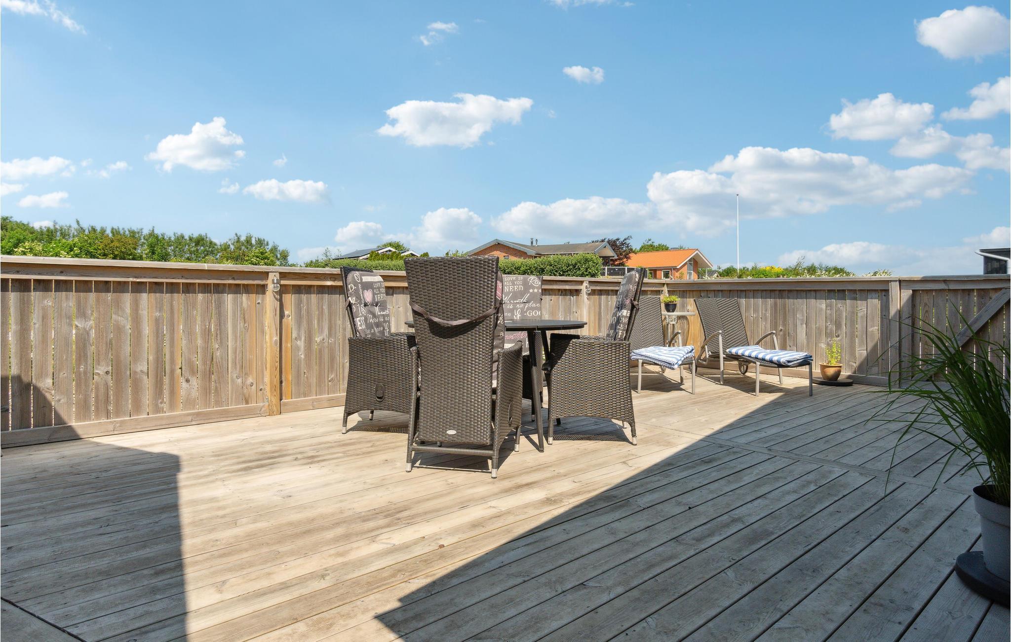 Elegant sommerhus ved Doverodde Strand med fjordudsigt, terrasse og plads til hele familien.