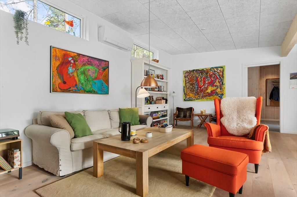 Hyggeligt sommerhus i Mols med brændeovn, internet og kun 200 meter til stranden.
