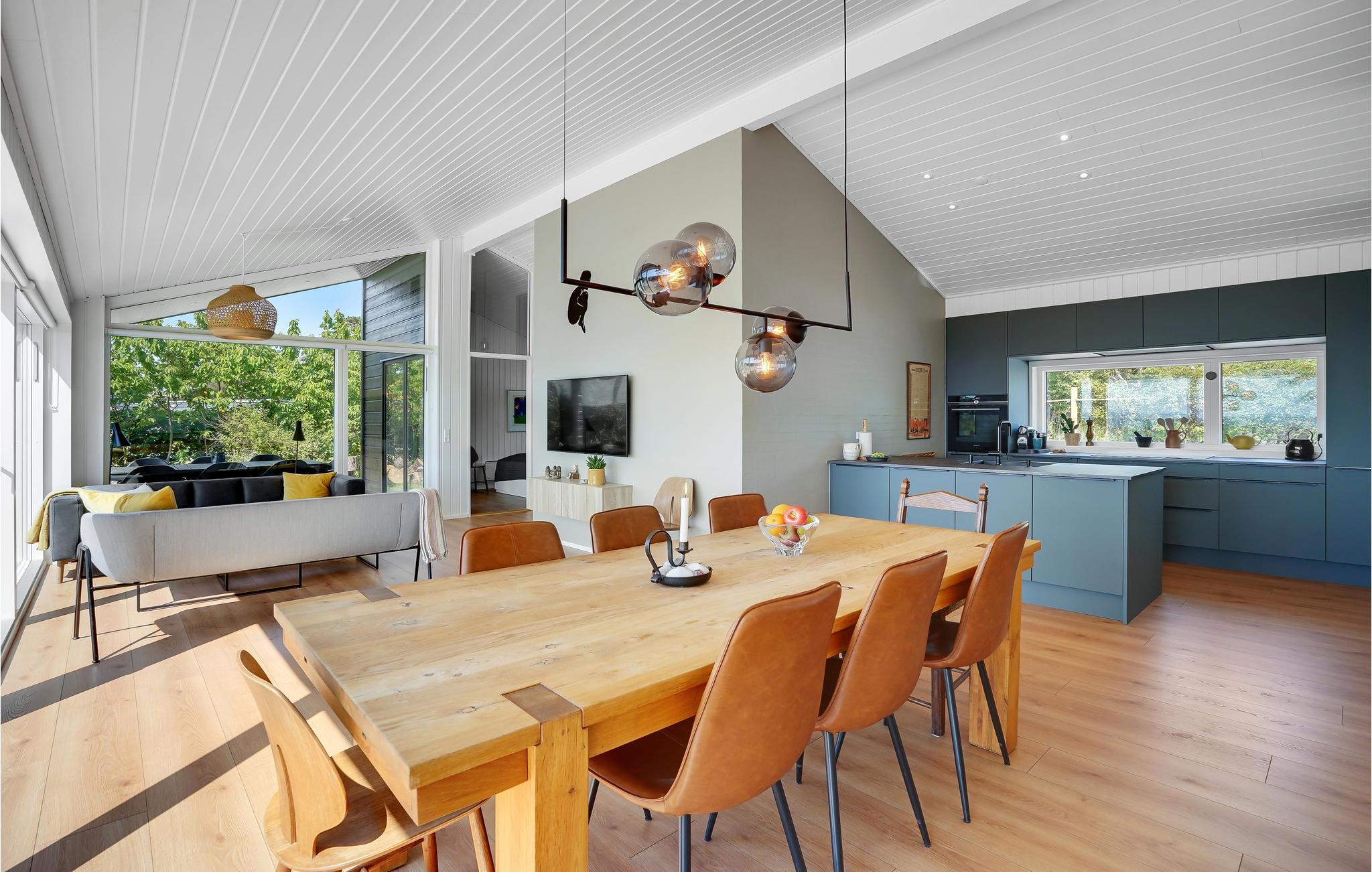 Fra dette indbydende sommerhus kan I nyde en fantastisk panoramaudsigt til vandet gennem de store vinduer. Både når I sidder i de komfortable sofaer og er samlet omkring måltiderne, kan I nemlig kigge direkte ud til vigen 50 meter længere ude. Huset er indrettet til, at I kan bo her på alle tider af året. En Nespresso-maskine gør det muligt at brygge lækker kvalitetskaffe på ferien - husk selv at medbringe kapsler.
