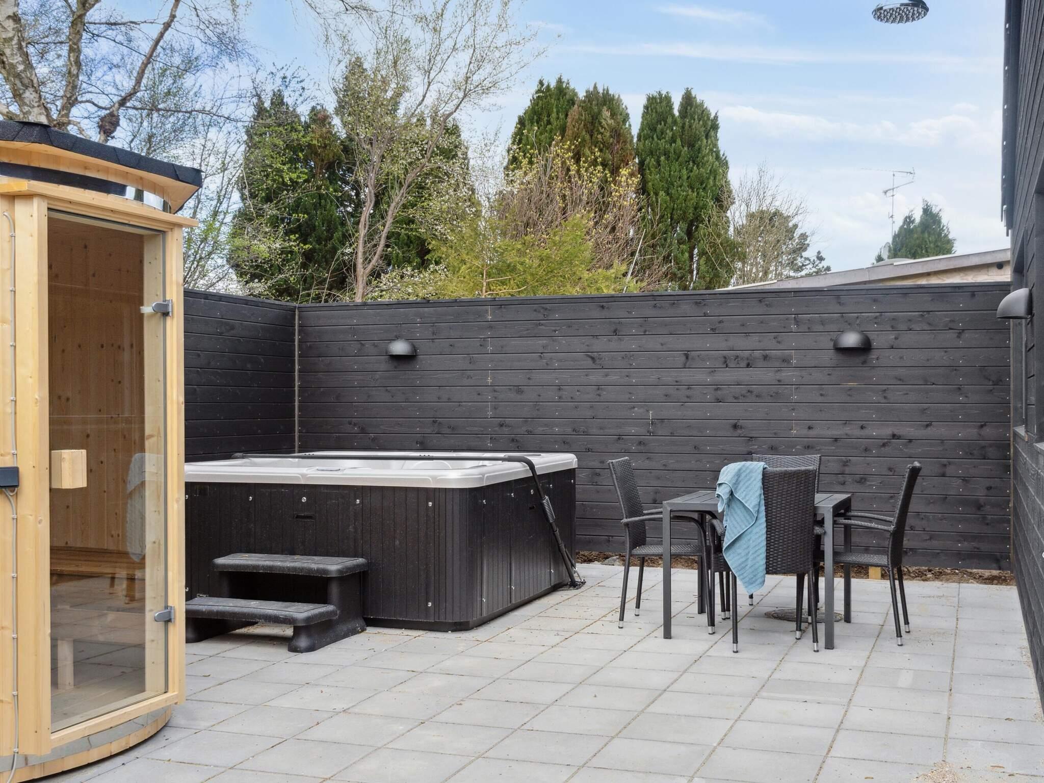 I dette feriehus kan du opfylde ethvert ønske om wellness og afslapning i luksuriøse omgivelser. Her har du dit helt eget wellnessområde. Du kan nyde en stille stund under stjernerne i det udendørs spabad eller varme dig i den udendørs sauna. Vil du have noget lidt mere aktivt, kan du tage en dukkert i den indendørs swimmingpool med rutsjebane og volleyballnet. Ved poolen finder du endnu et spabad med plads til 7-9 personer.